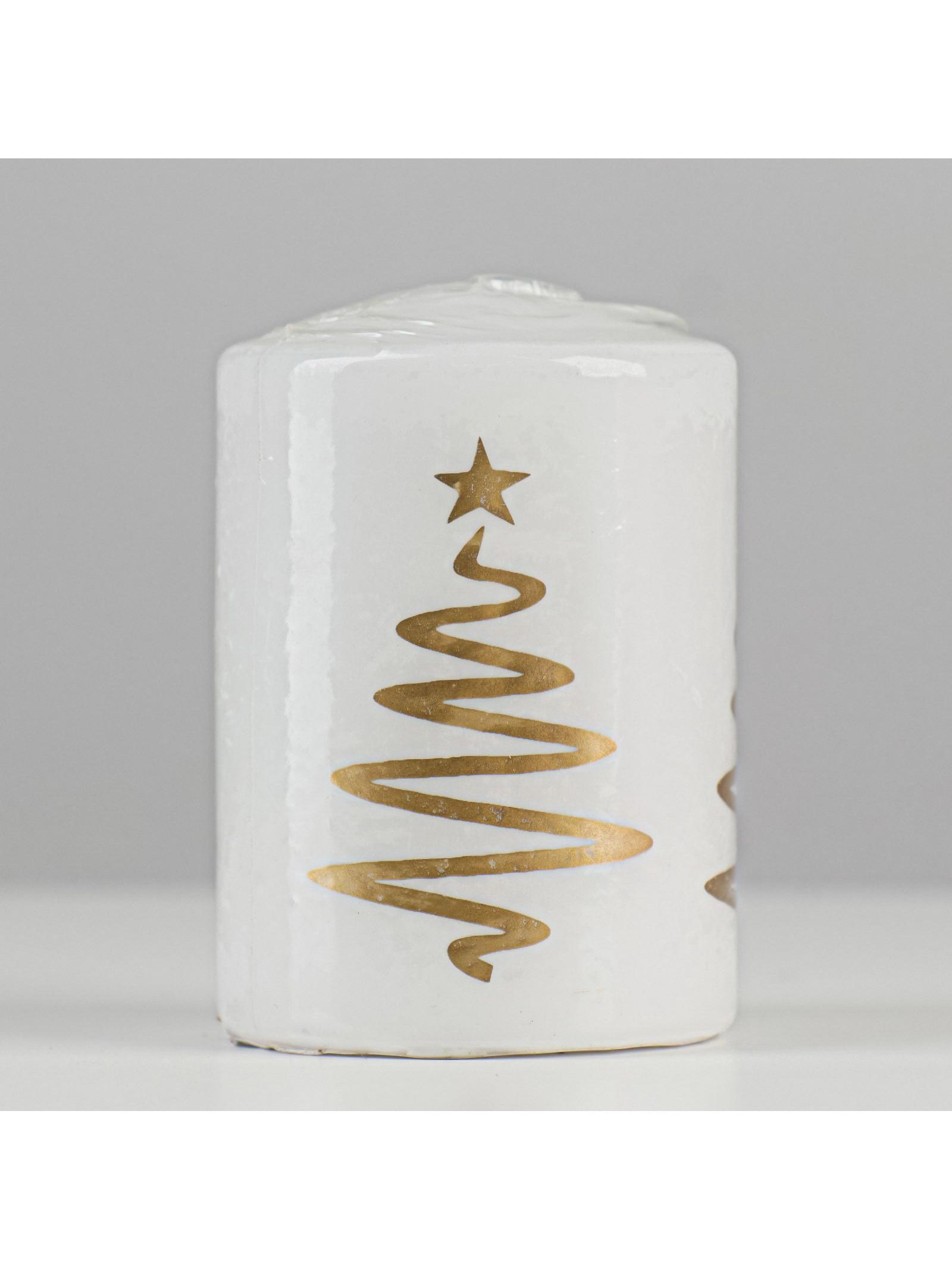 Свеча - цилиндр "Ёлочка", 5.6x8 см, белая с золотом, Россия