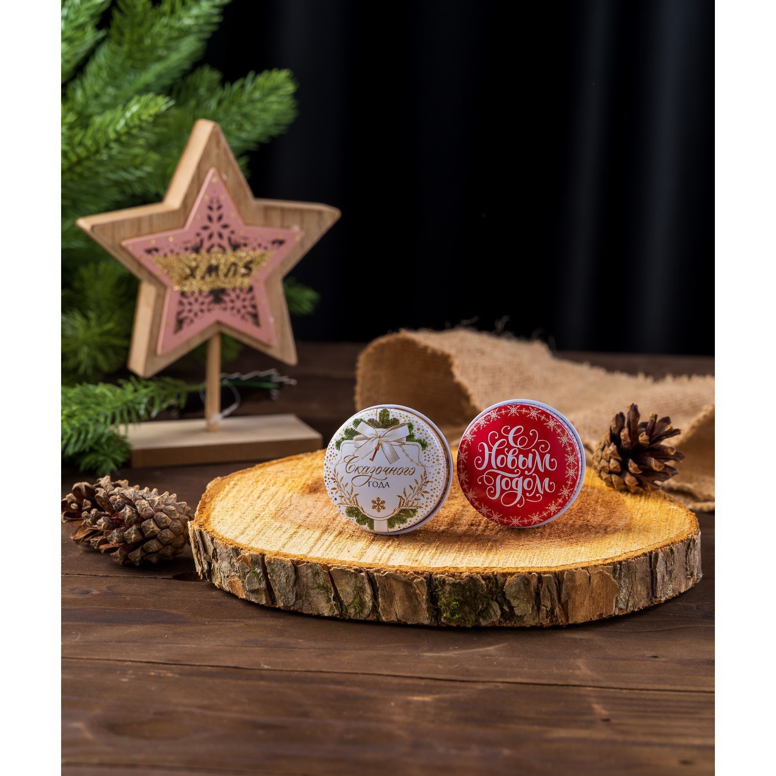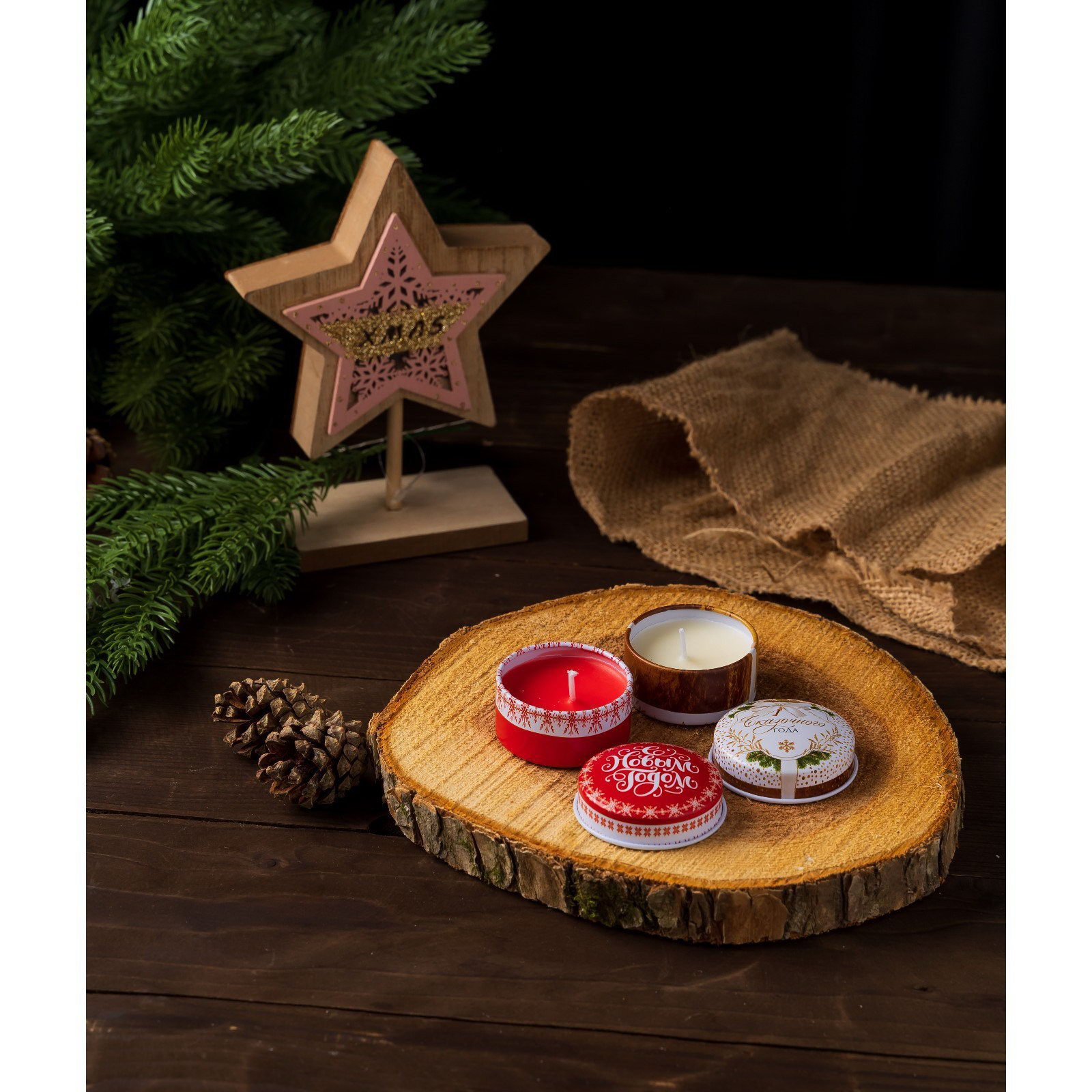 Набор свечей 2 шт. в железной банке, аромат еловые ветки и вишня, диам 4.8 см, 5.3x5.3x5.5 см., Сима-ленд, Китай