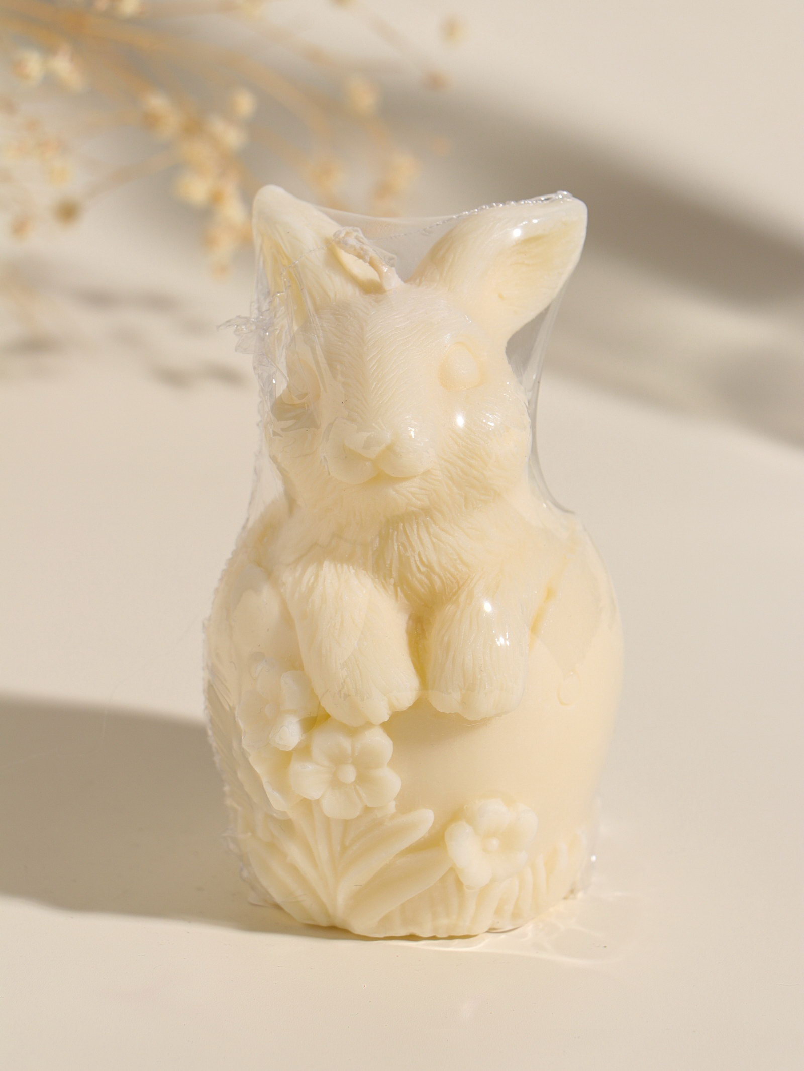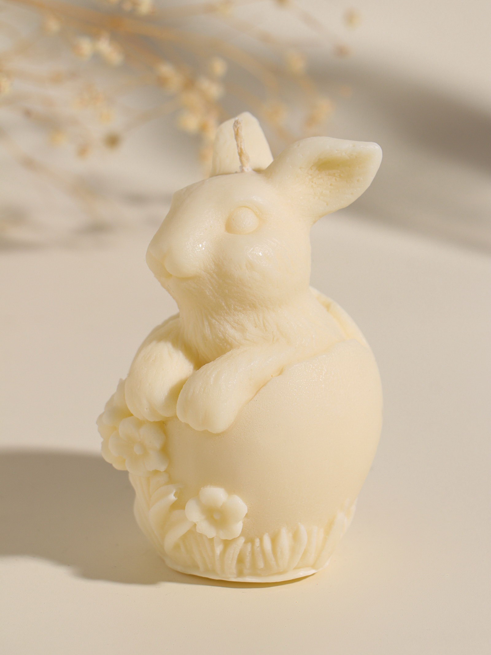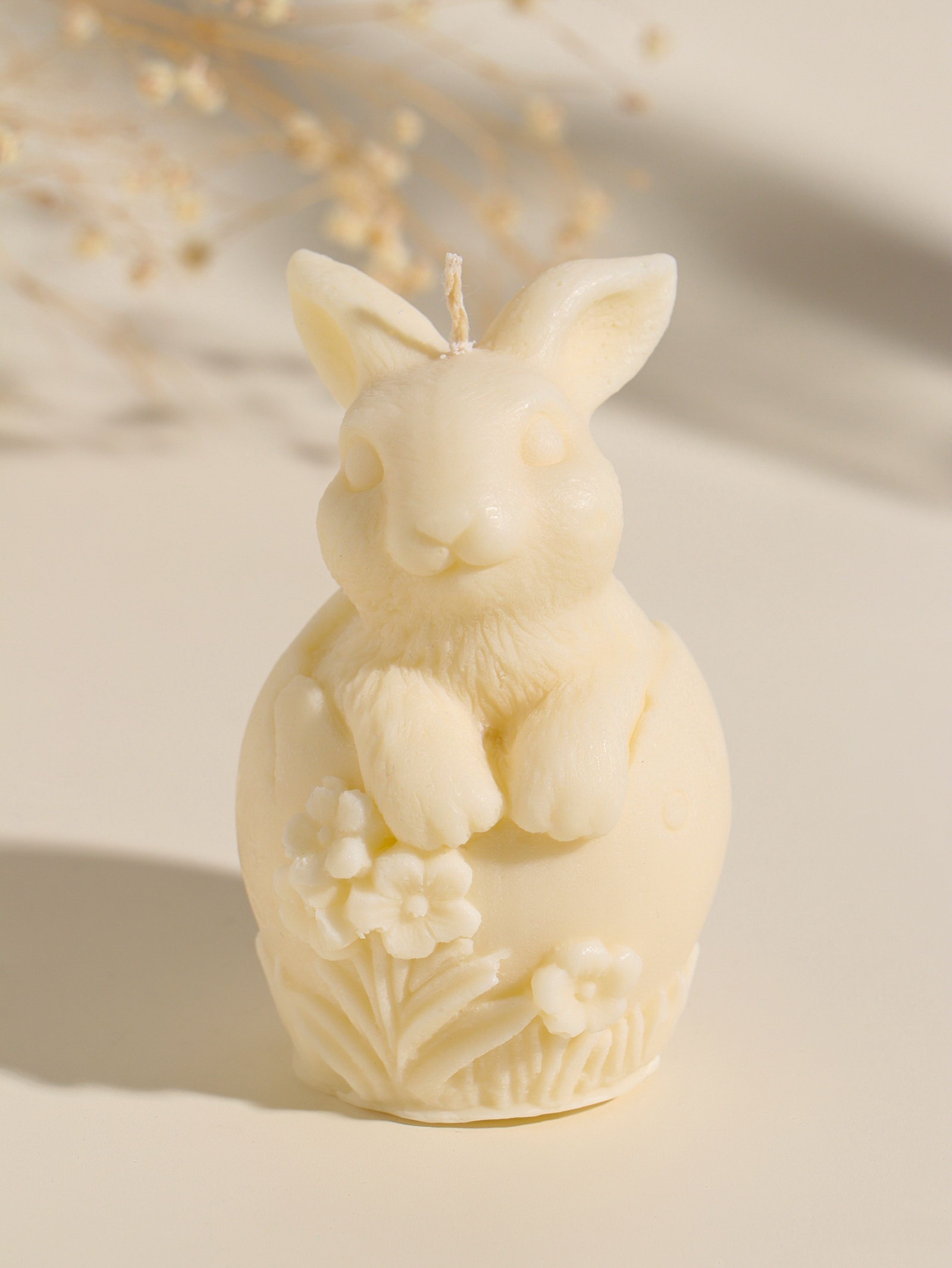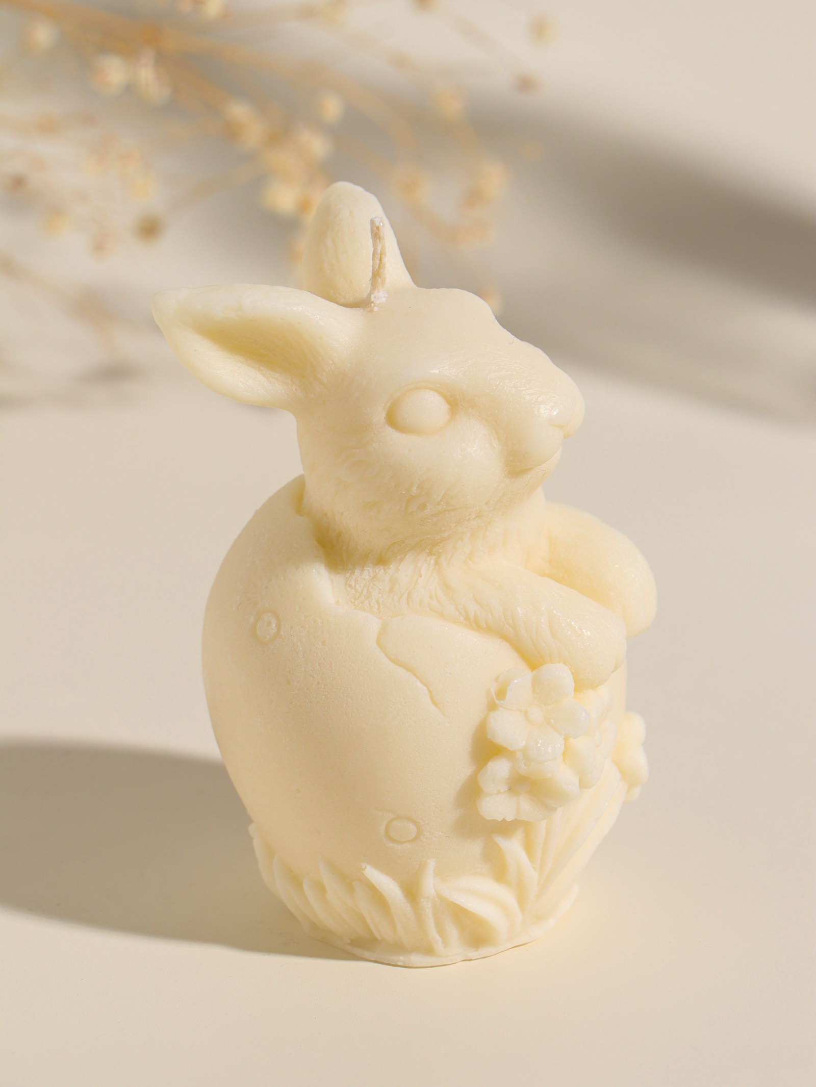 Свеча пасхальная "Заяц с цветами", 6x10 см, бежевый, Россия