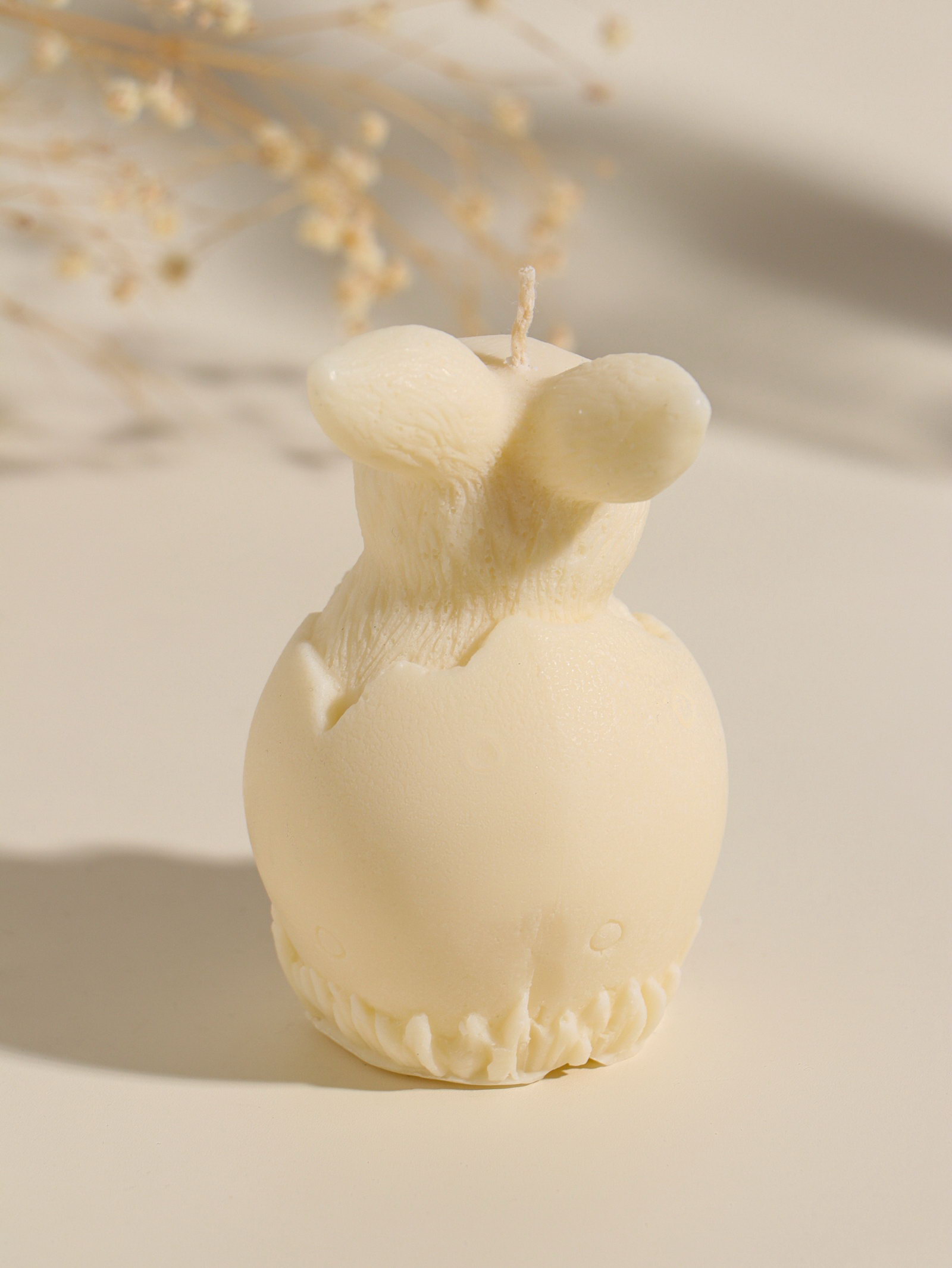 Размер упаковки: 5.5 x 9.5 x 5.5 см. tnved: 3406000000 Температурное ограничение: Нет Ароматизированные: Нет Высота свечи, см: 10 Форма свечи: Фигурная Состав: Парафин Цвет: Бежевый Тематика праздника: Пасха Темпер. ограничение НЕ ВЫШЕ ℃: +25 Темпер. ограничение НЕ НИЖЕ ℃: -10 Ручная работа: Да Эта бежевая пасхальная свеча в виде зайца станет тёплым акцентом праздничного стола. Фигурная композиция с цветами создаёт атмосферу уюта и весеннего обновления, наполняя пространство мягким, живым светом. Классический парафин обеспечивает ровное и долгое горение. Особенности