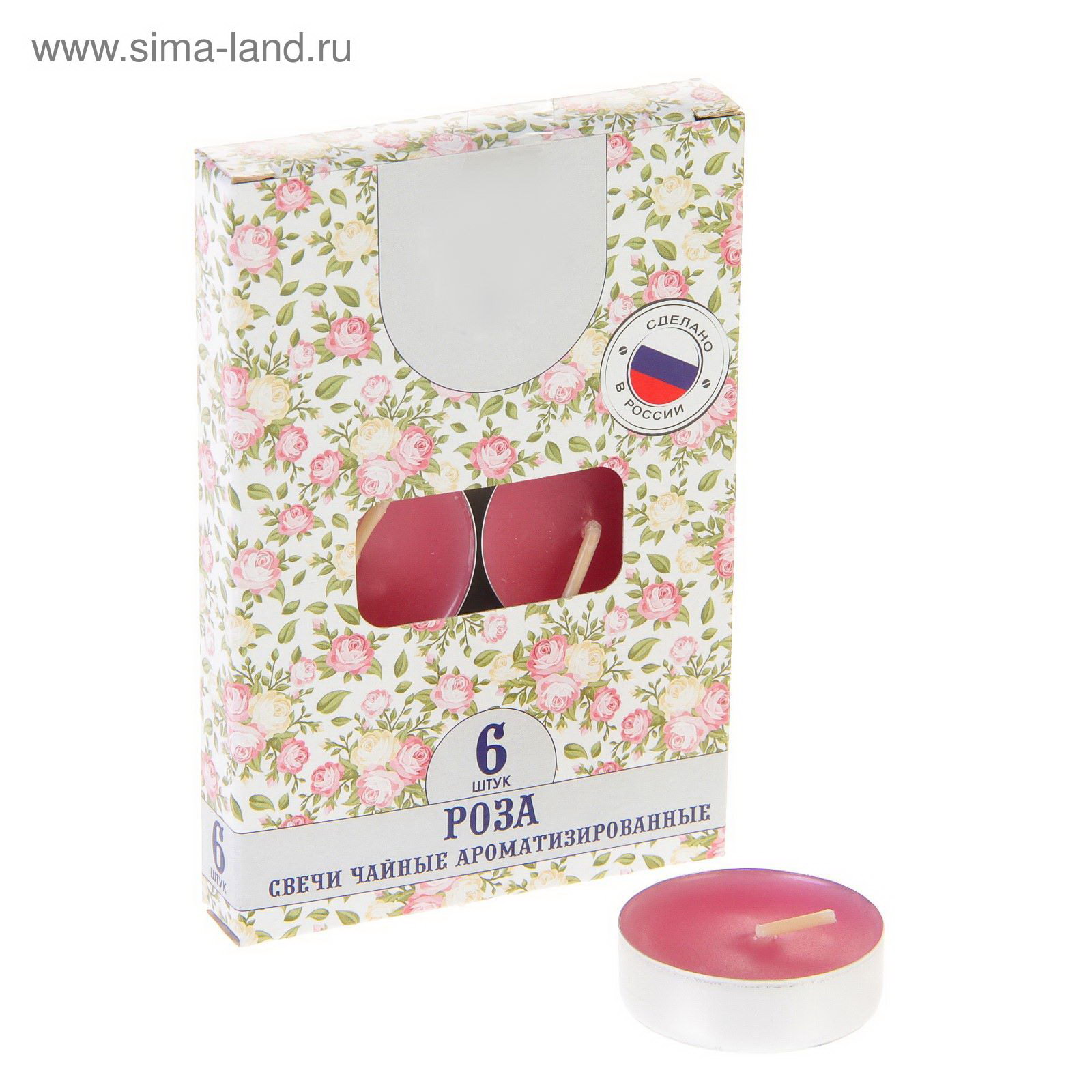 Набор свечей ароматических чайных "Роза", 6 шт., Русская свечная мануфактура, Россия