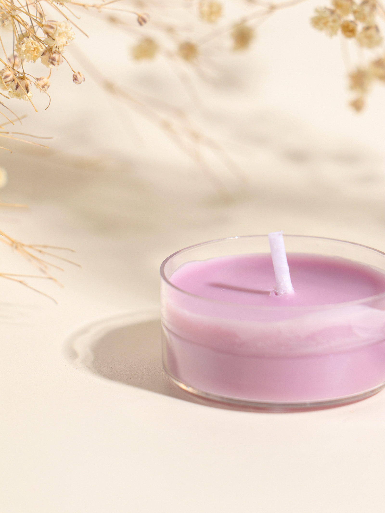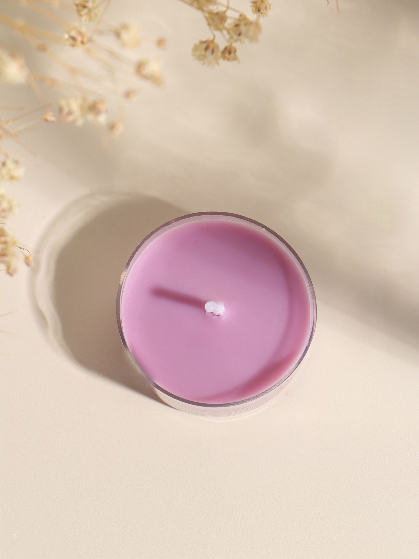 Чайная свеча ароматическая "Круглая" серо-фиолетовая, лаванда, 3.8x3.8x1.8 см, 3.8x3.8x1.8 см., Китай
