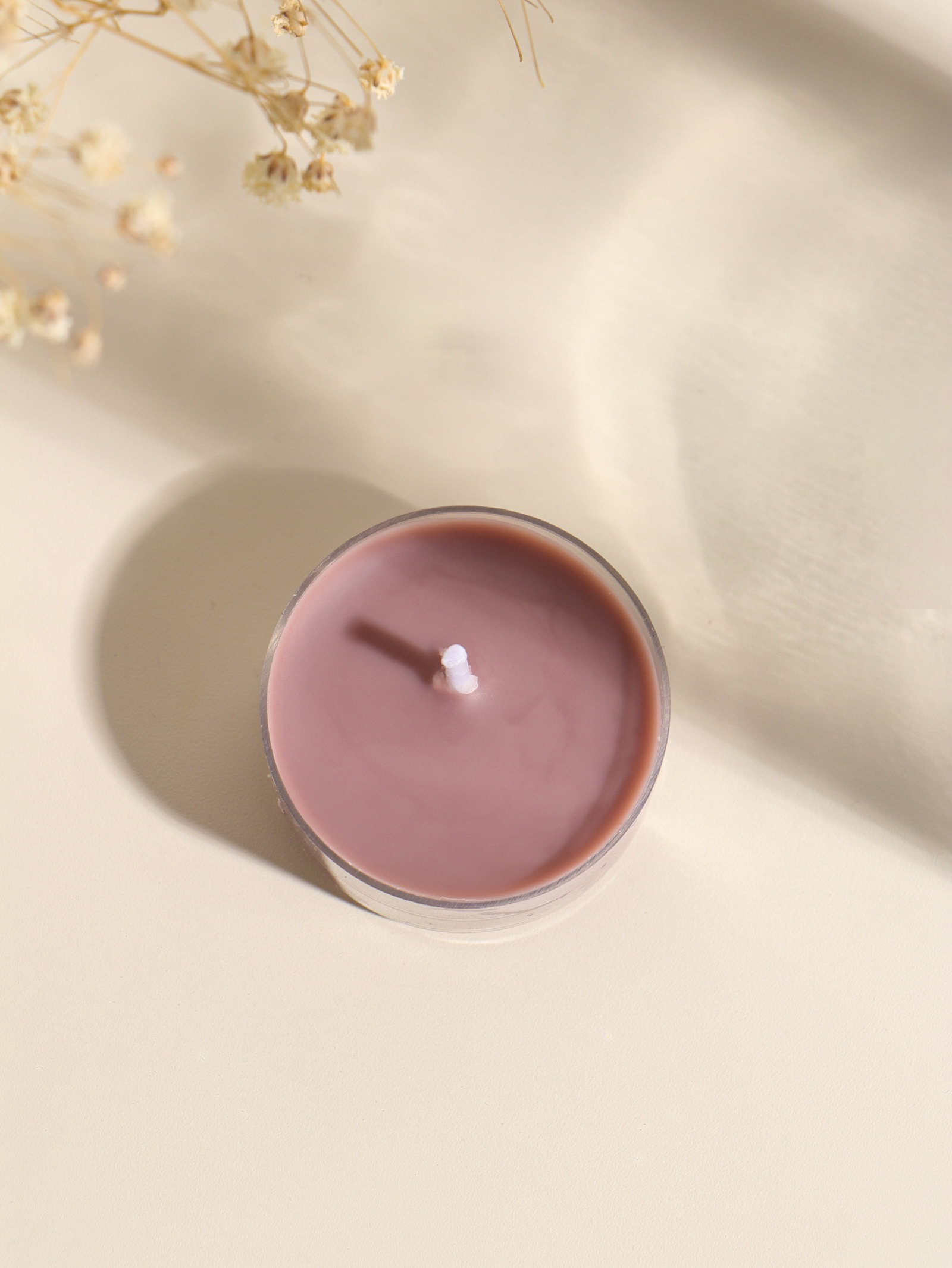 Чайная свеча ароматическая "Круглая" тёмно-бежевая, амбра, 3.8x3.8x1.8 см, 3.8x3.8x1.8 см., Китай