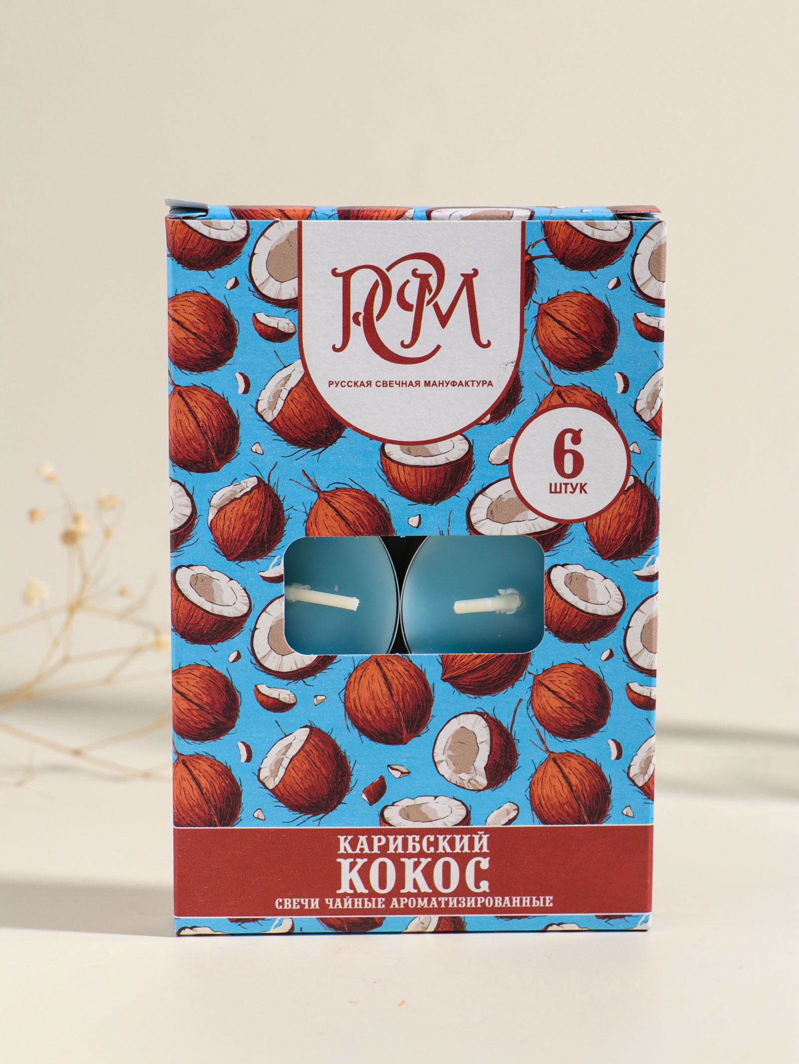 Набор свечей ароматических чайных "Карибский кокос", 6 шт., Русская свечная мануфактура, Россия