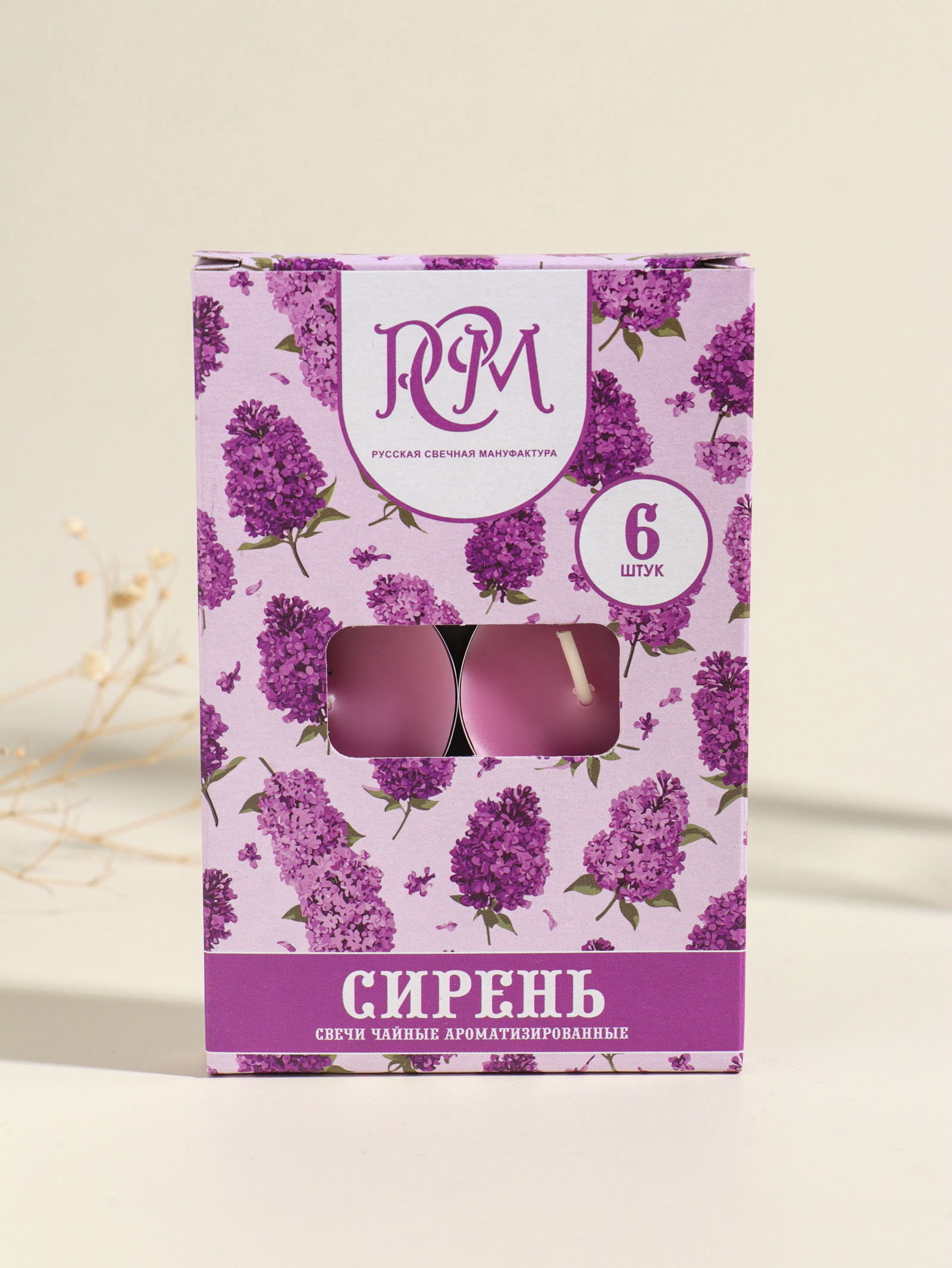 Набор свечей ароматических чайных "Сирень", 6 шт., Русская свечная мануфактура, Россия