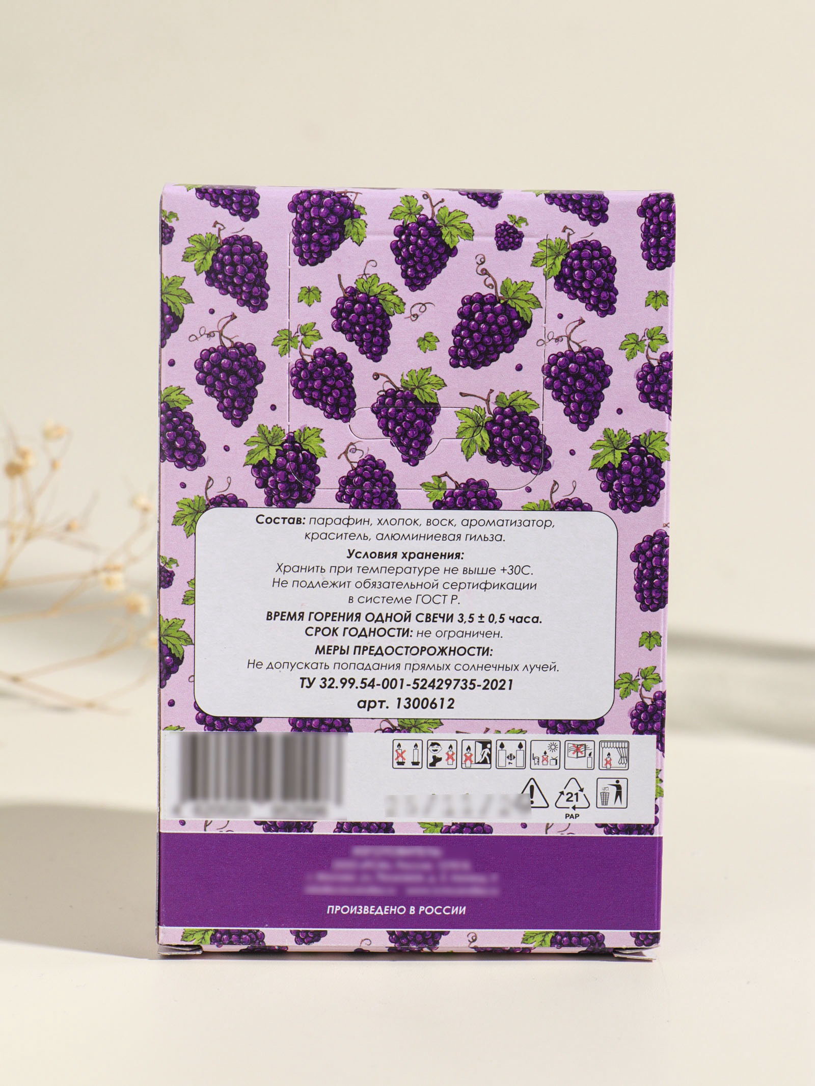 Набор свечей ароматических чайных "Тосканский виноград", 6 шт., Русская свечная мануфактура, Россия
