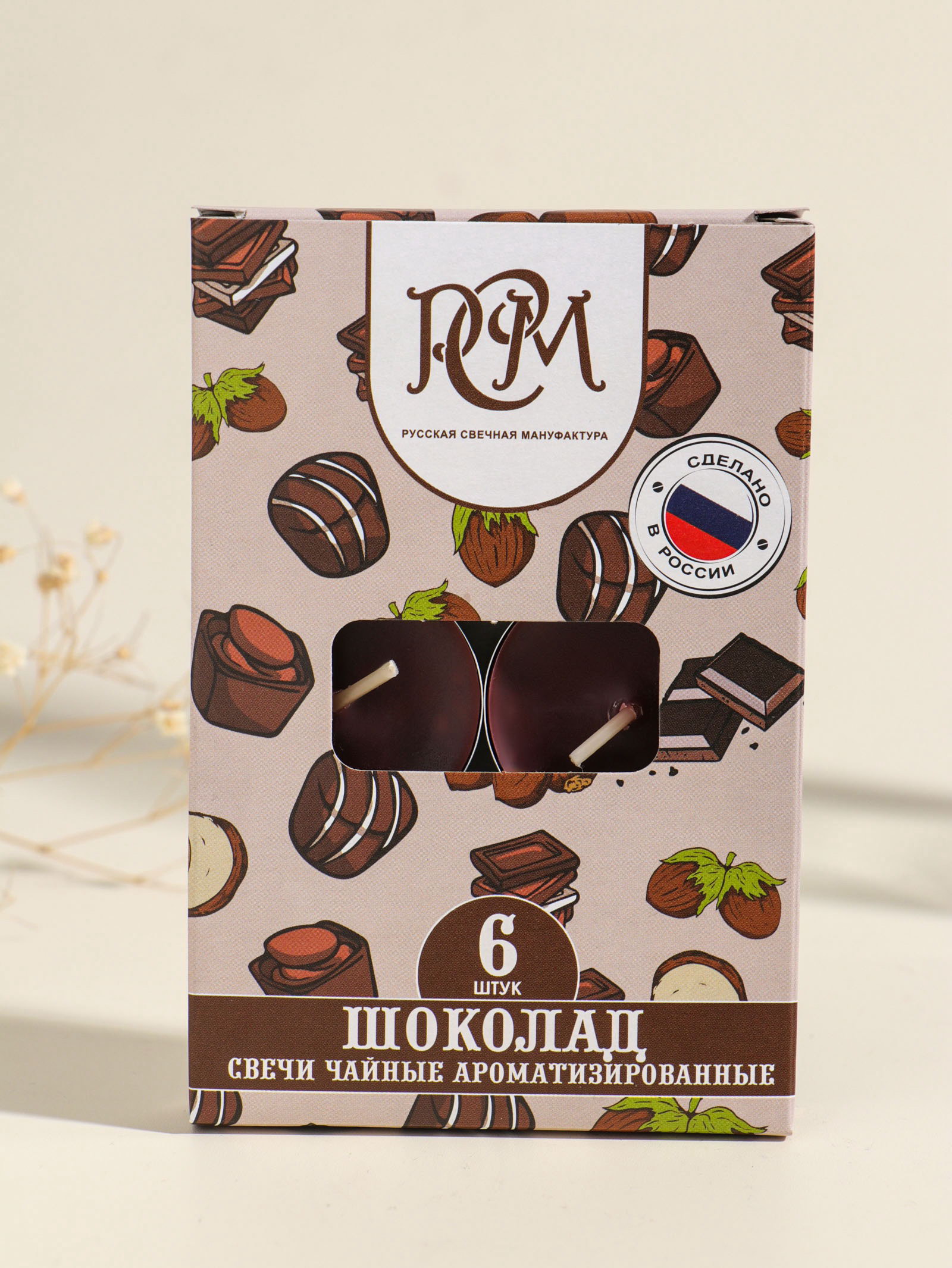 Набор свечей ароматических чайных "Шоколад", 6 шт., Русская свечная мануфактура, Россия