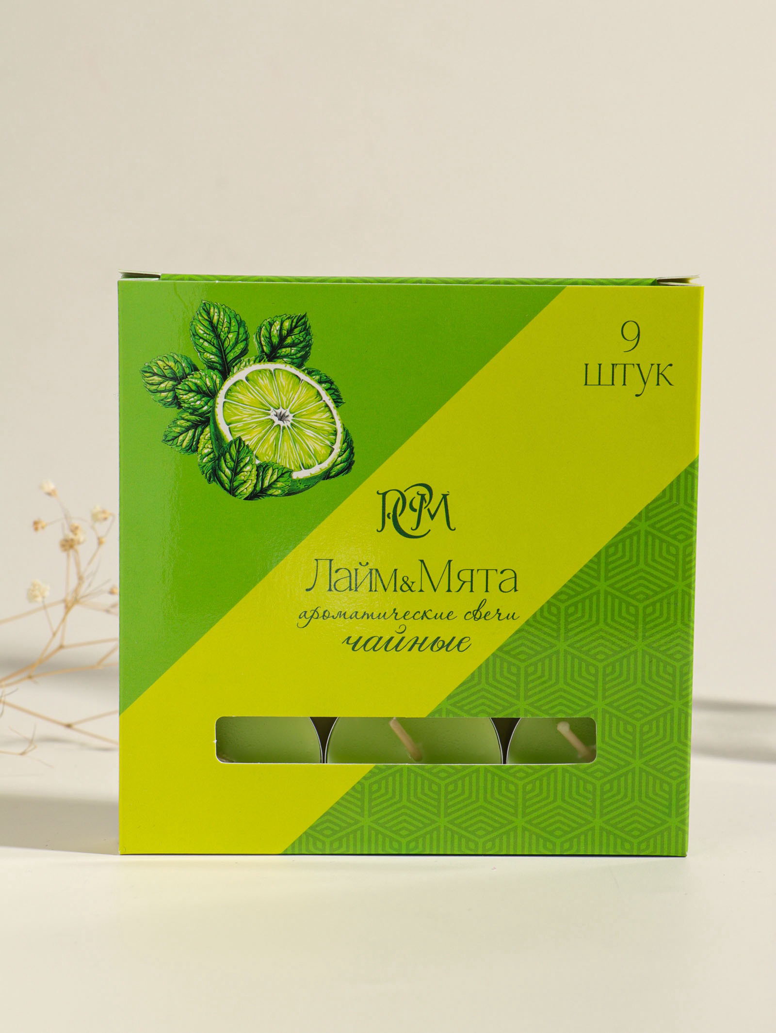 Набор свечей ароматических чайных "Лайм и мята", 9 шт., Русская свечная мануфактура, Россия