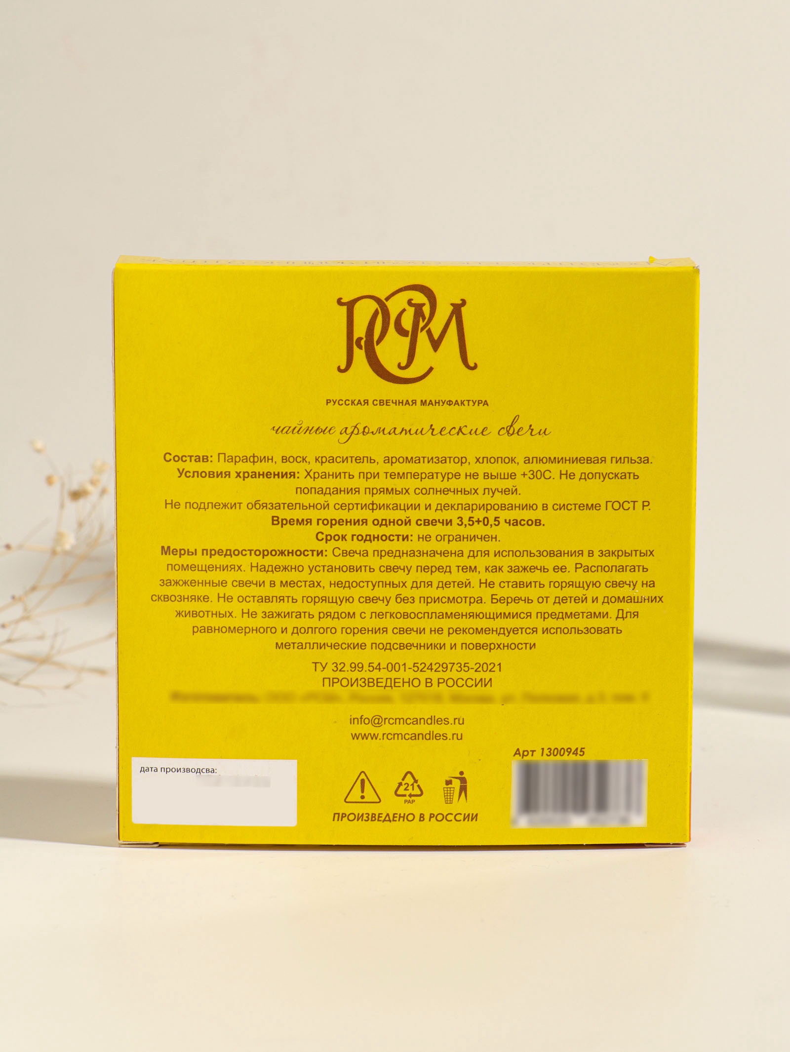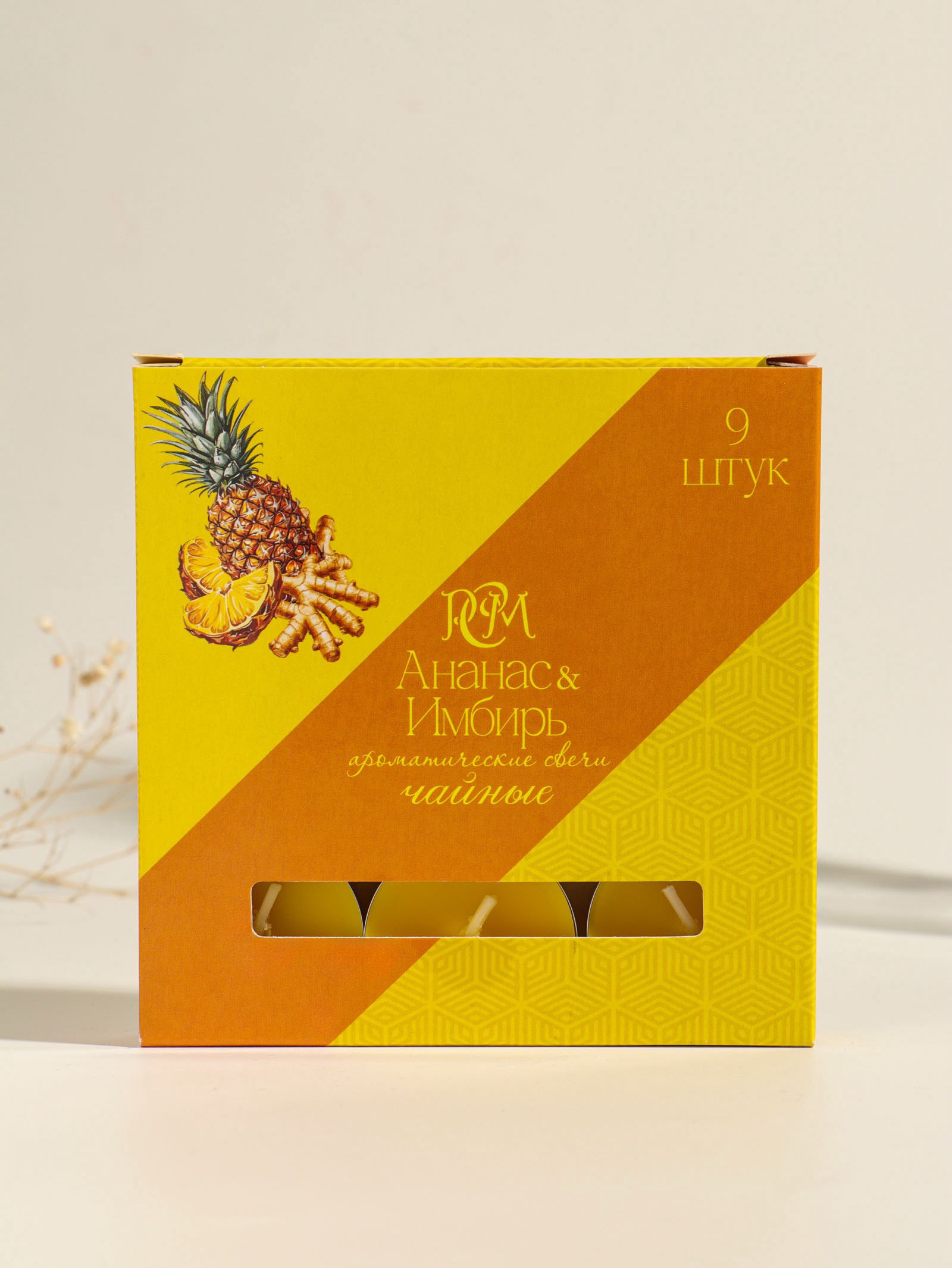 Набор свечей ароматических чайных "Ананас и имбирь", 9 шт., Русская свечная мануфактура, Россия