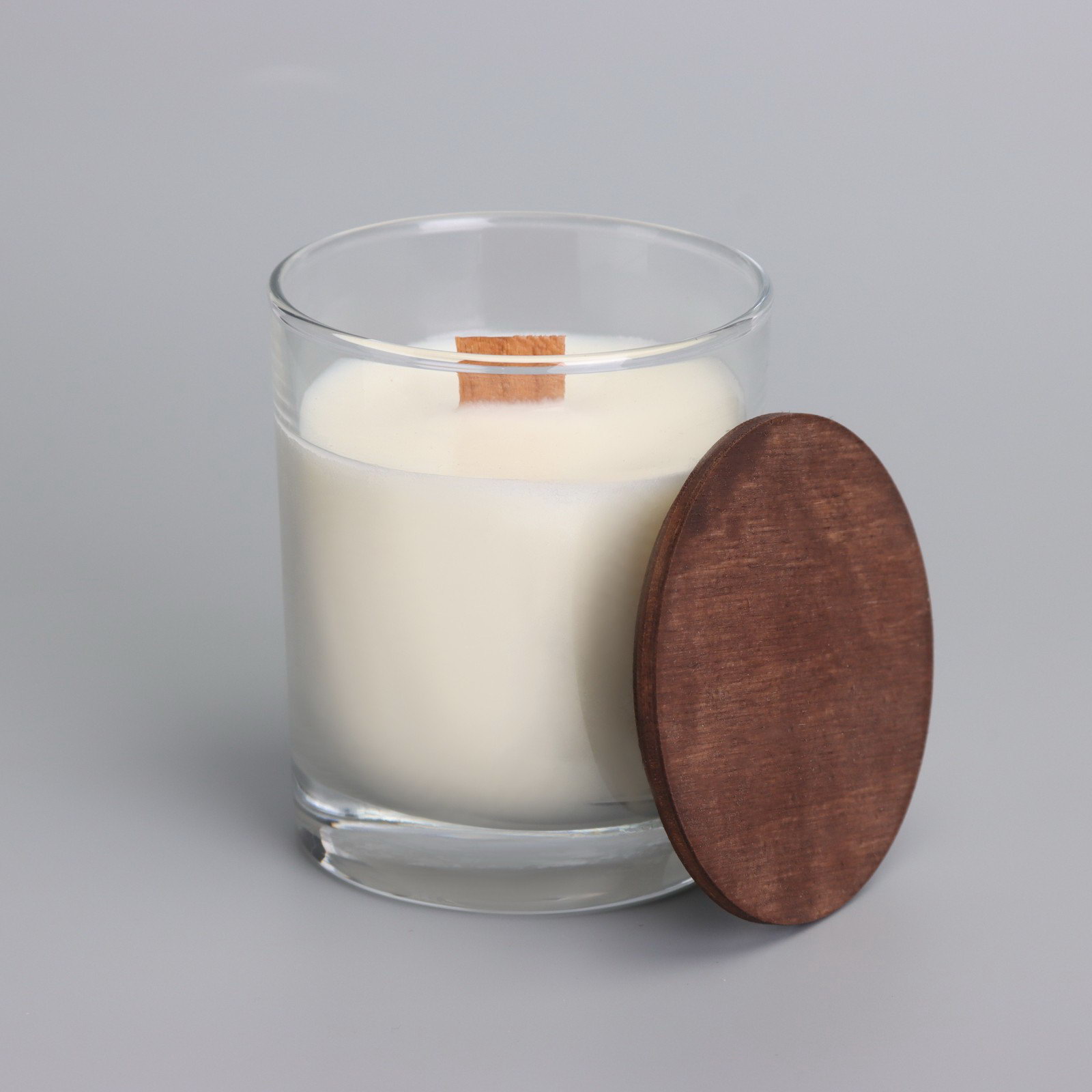 Свеча из соевого воска в стакане с деревянным фитилем и крышкой "Ванильный капучино", 110 гр, Россия