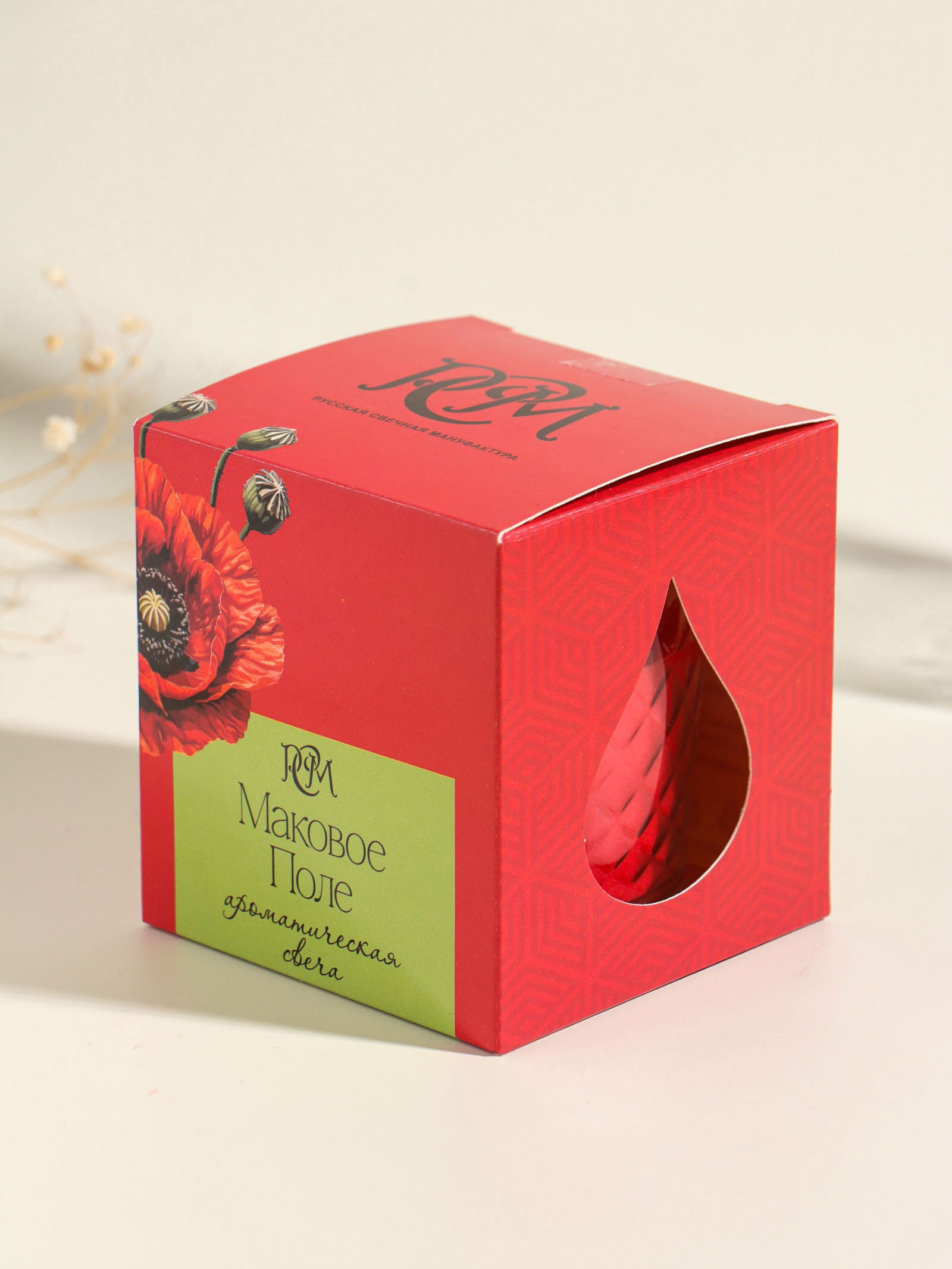 Состав: Воск, Парафин Тематика праздника: 14 Февраля, 8 Марта, Универсальная тематика Размер упаковки: 8 x 8 x 8.5 см. tnved: 3406000000 Температурное ограничение: Нет Цвет: Красный Вид фитиля: Нить Аромат: Мак Набор: Нет Темпер. ограничение НЕ ВЫШЕ ℃: +25 Форма свечи: В стакане Темпер. ограничение НЕ НИЖЕ ℃: -10 Высота свечи, см: 8.5 Ширина, см: 8 Ароматизированные: Да Время горения, ч: 30 Ручная работа: Нет Эта ароматическая свеча в стеклянном стакане создаёт атмосферу летнего поля. Тёплый и мягкий аромат мака наполняет пространство, настраивая на отдых и спокойный вечер. Универсальный дизайн делает её идеальным акцентом для интерьера или готовым подарком. Характеристики свечи
