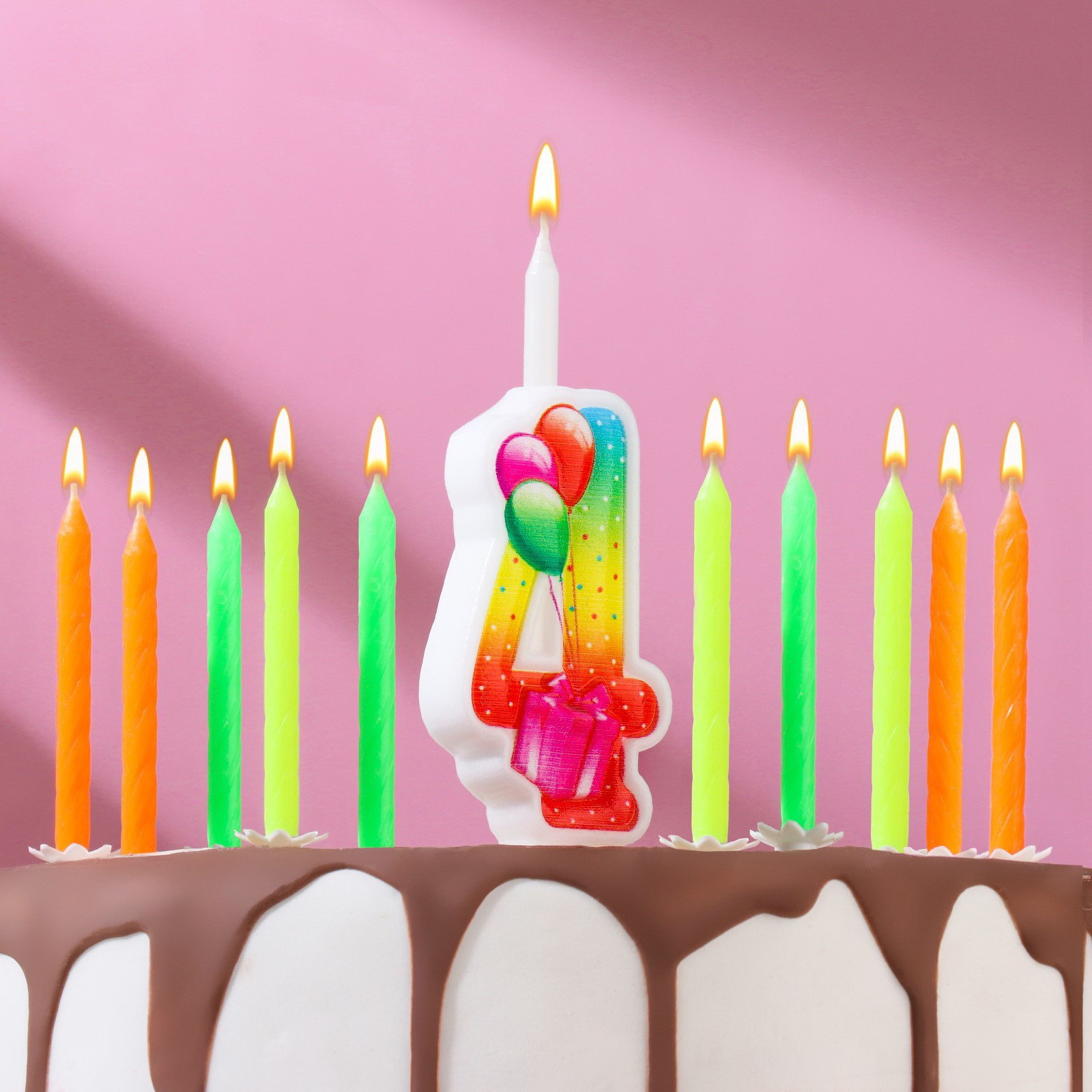 Набор свечей Цифра "4" + классические, 10 см, Омский свечной завод, Россия