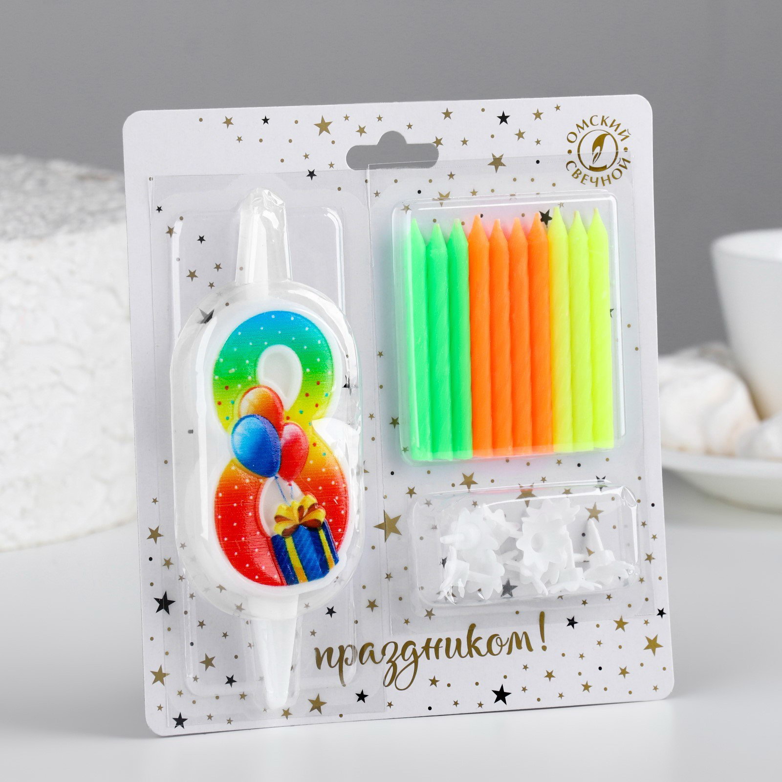 Набор свечей Цифра "8" + классические, 10 см, Омский свечной завод, Россия