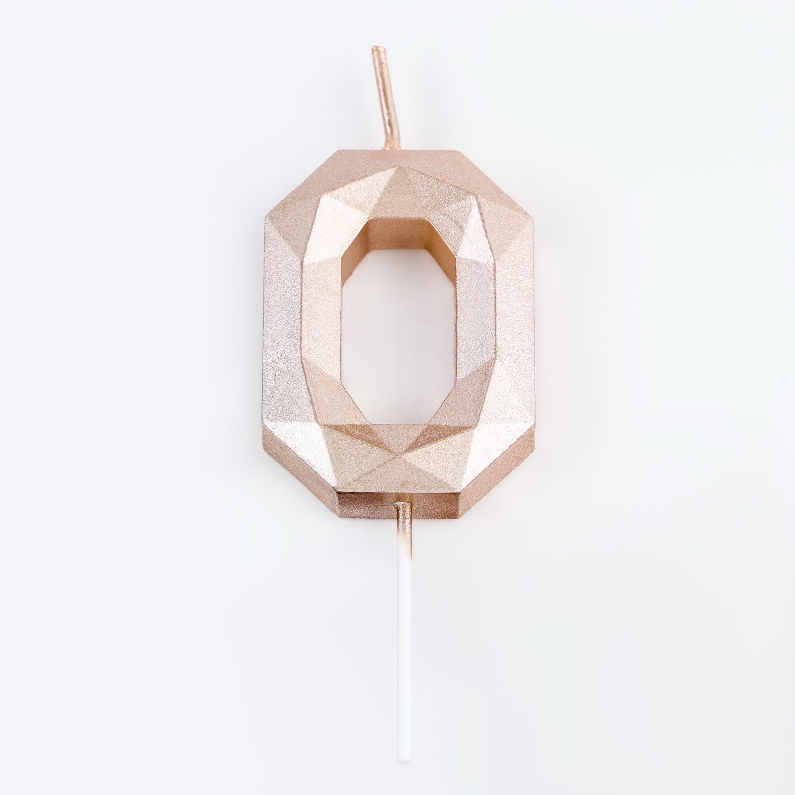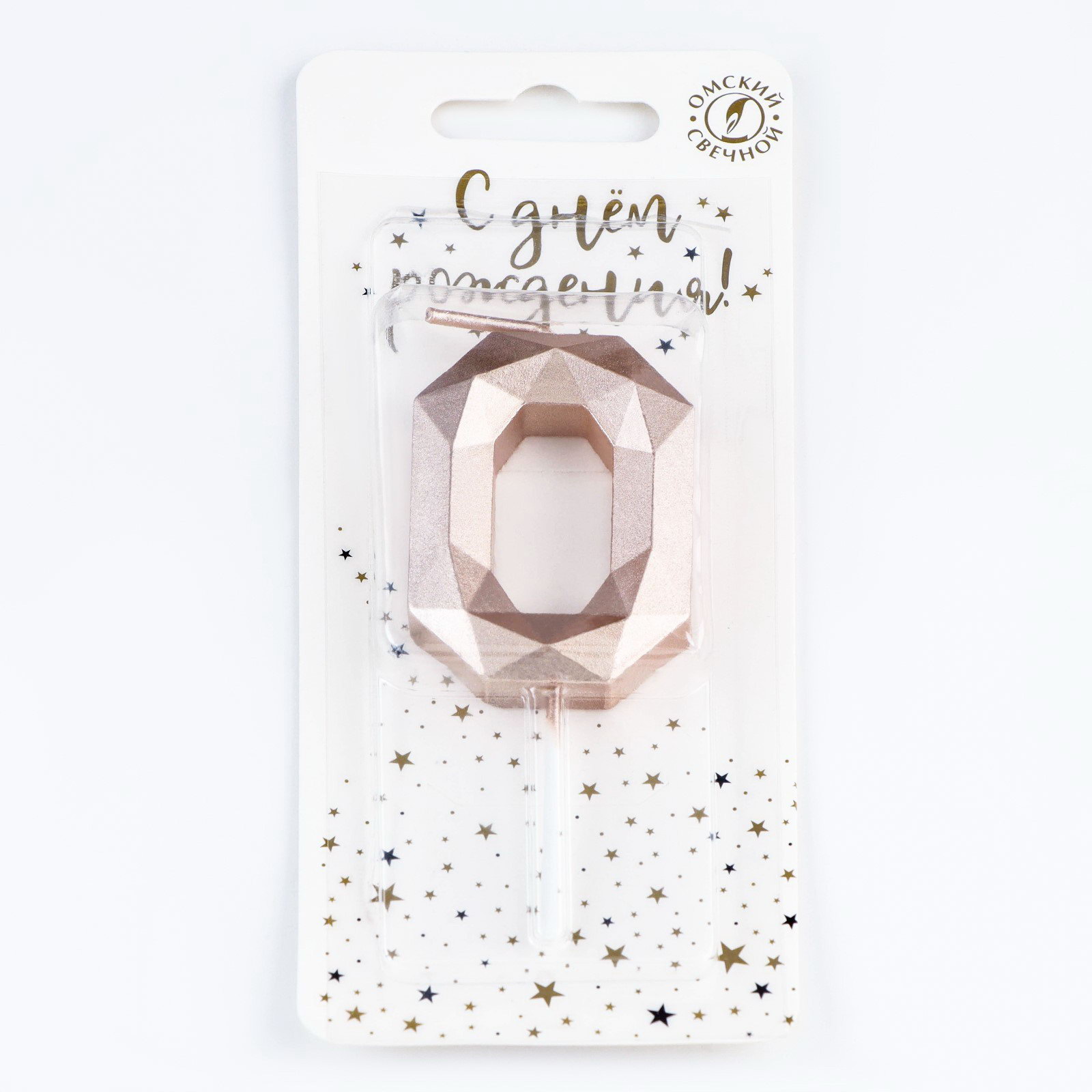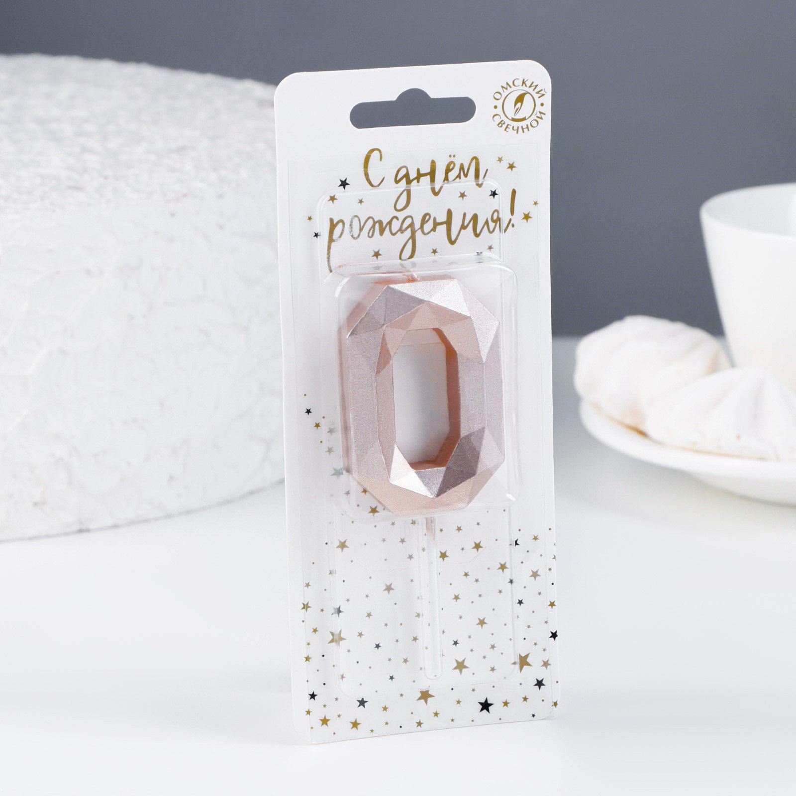 Свеча в торт на шпажке "Многогранник", цифра 0, 7 см, шампань, Омский свечной завод, Россия