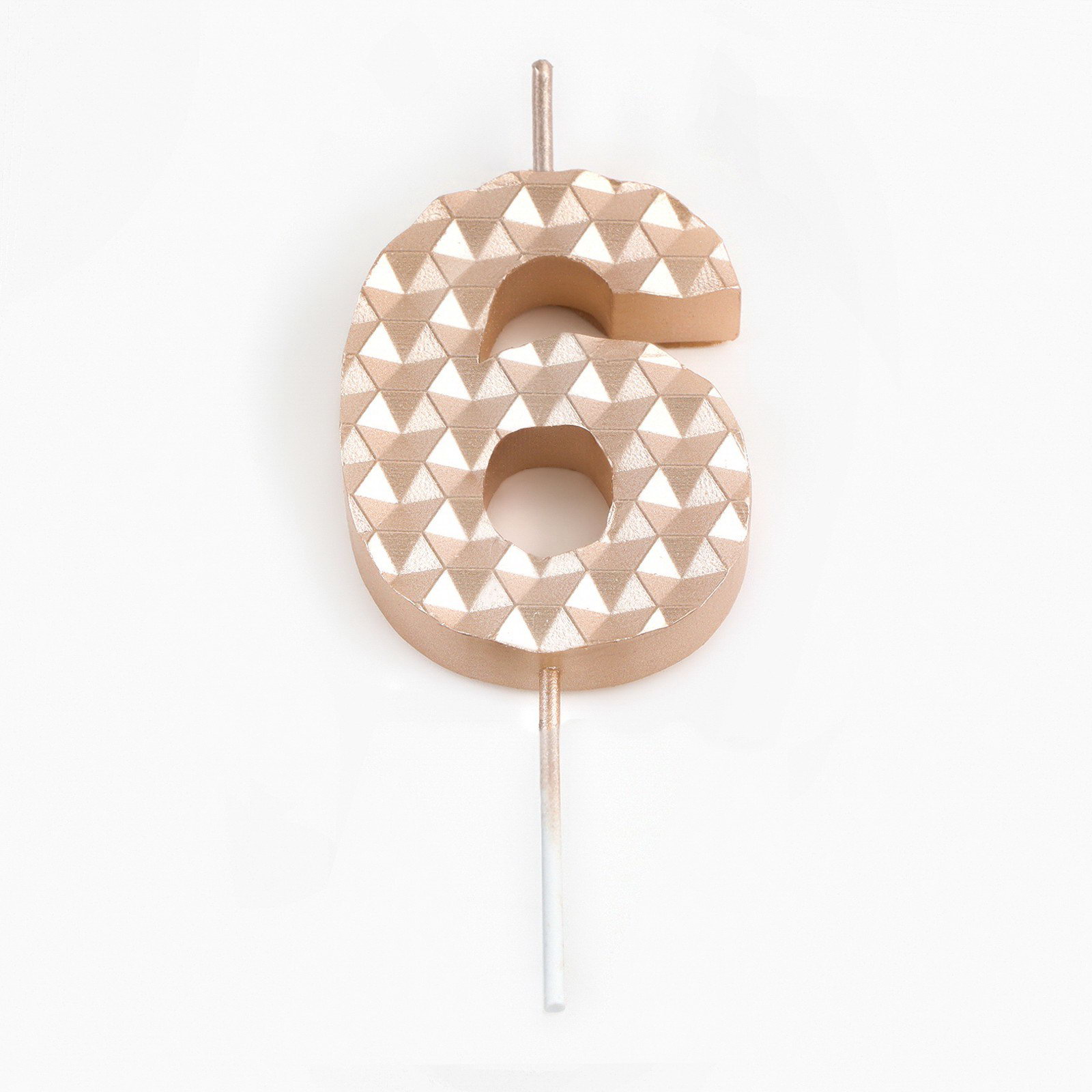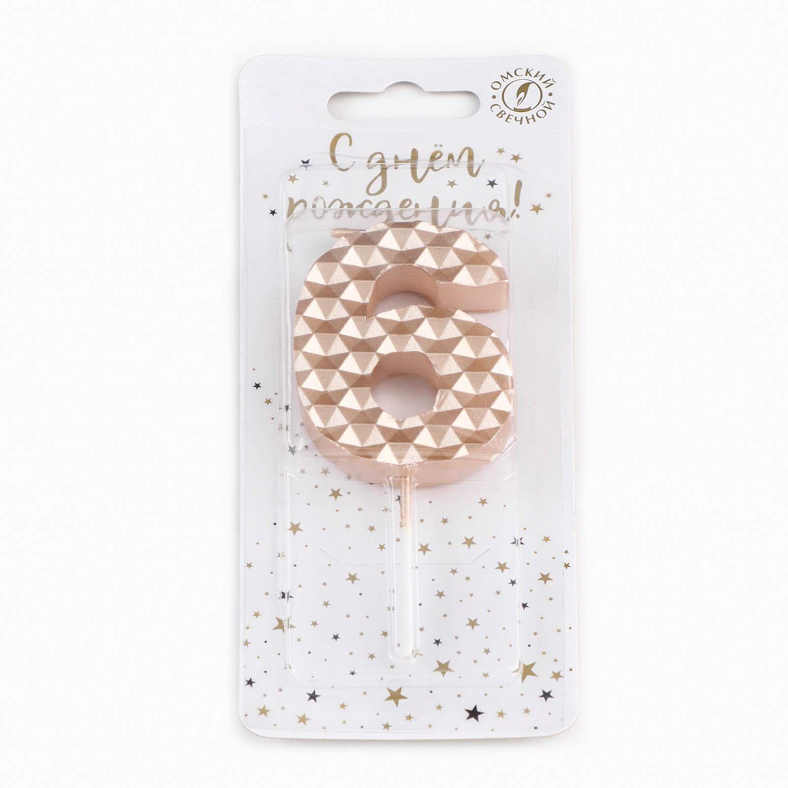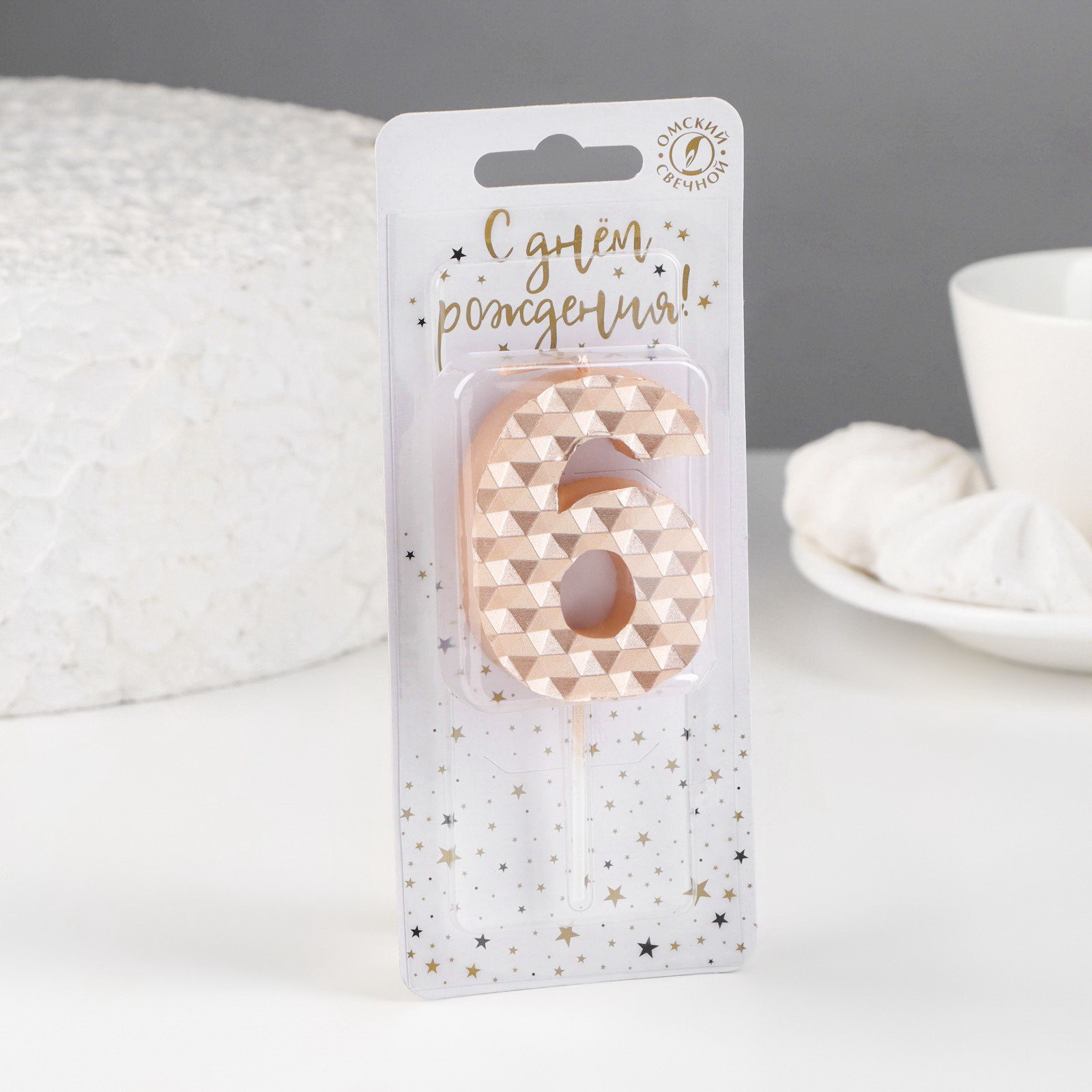 Свеча в торт на шпажке "Соты", цифра 6, 7 см, шампань, Россия