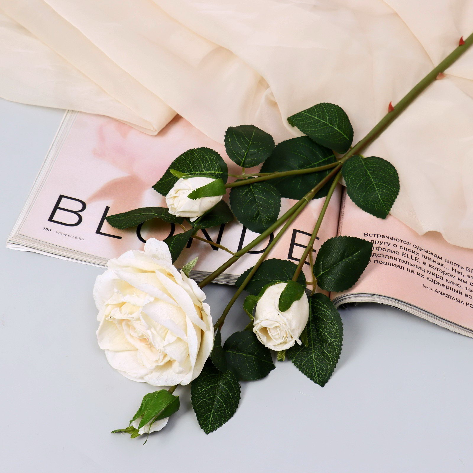 Цветы искусственные "Роза изыск", 10x64 см, белые, 10x64 см., Poetry in flowers, Китай