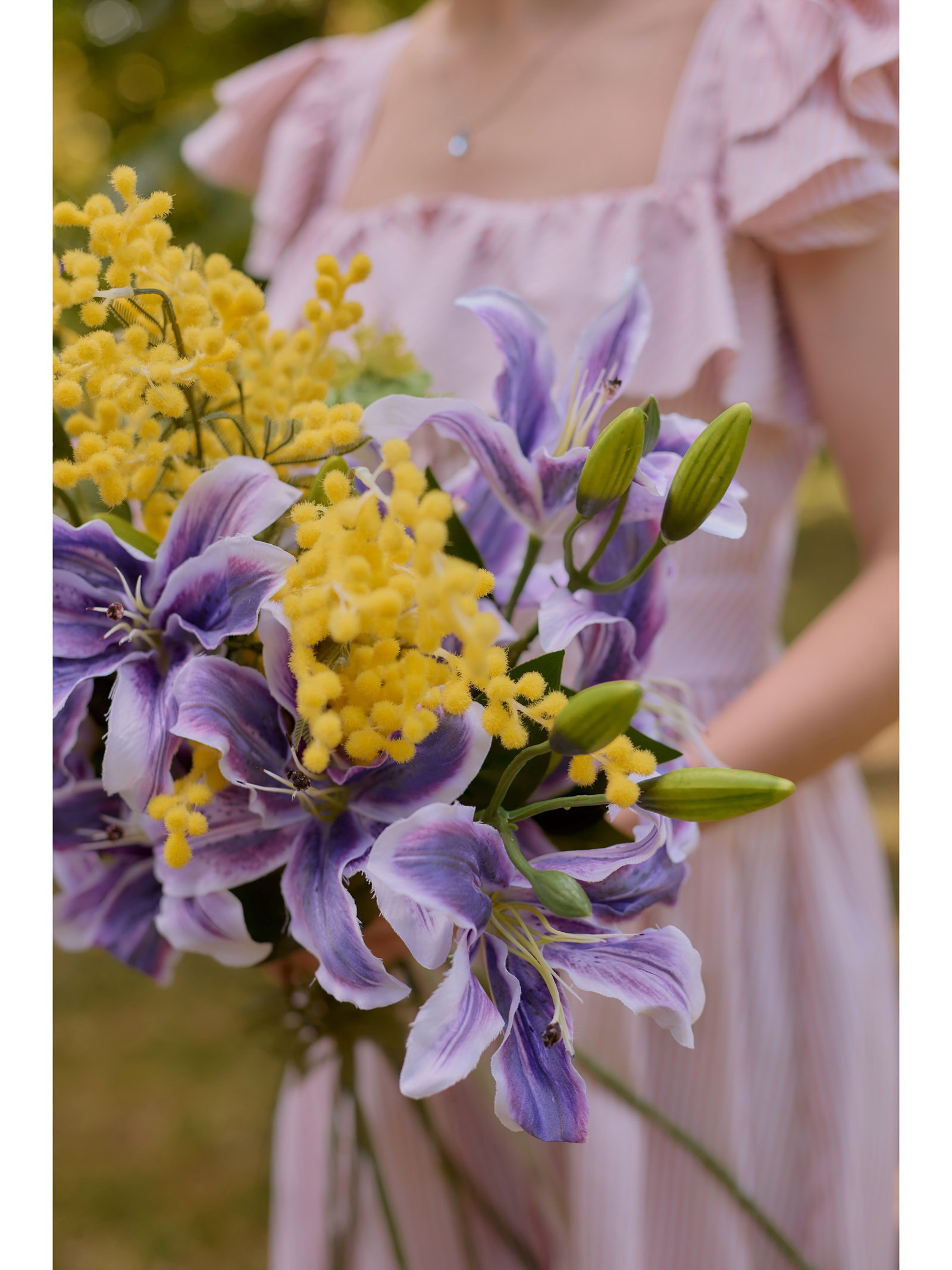 Идеальное украшение для любого пространства: эти фиолетовые лилии украсят любой уголок вашего дома или офиса. Подчеркните свой вкус и стиль, добавив нотки утонченной красоты в окружение. Искусственные цветы – это прекрасная альтернатива живым растениям, не требующая особого ухода. Соберите красивый букет из нефролепсиса, жасмина колокольчика. ![]() | ||