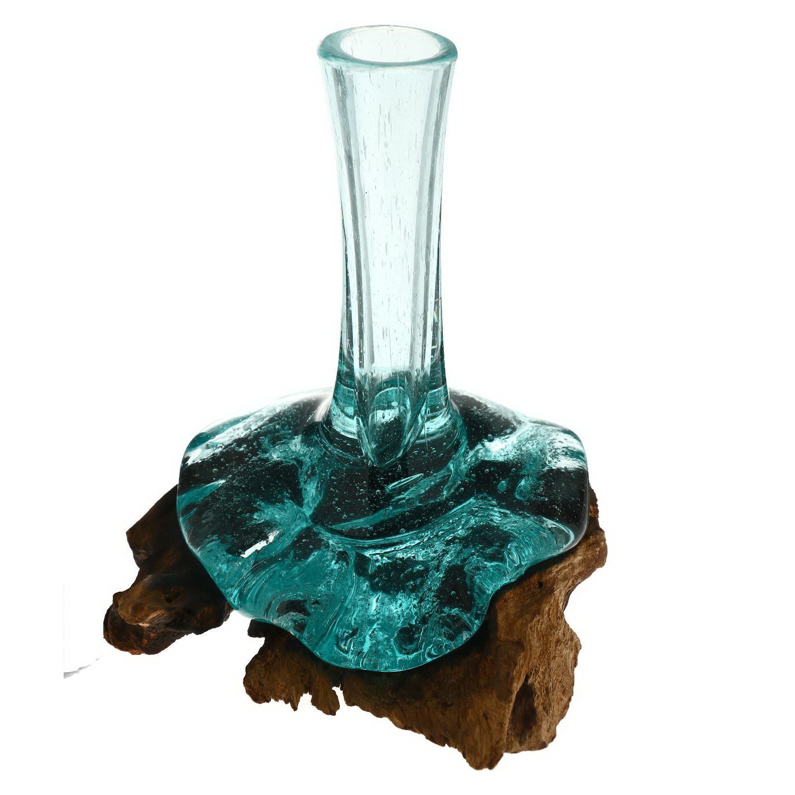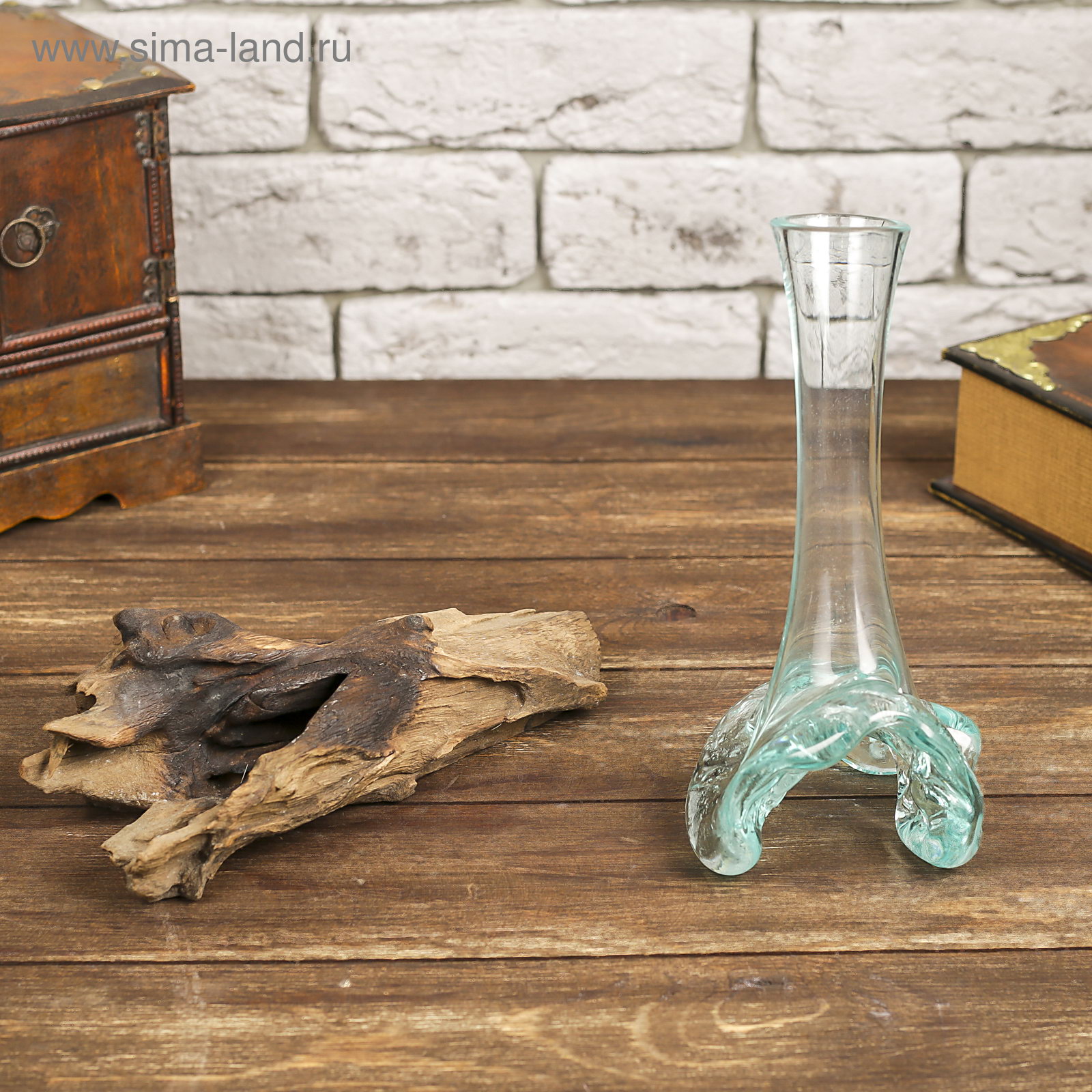 Вазон стекло на дереве "Звезда" 25х15х15 см, 15x15x25 см., Индонезия