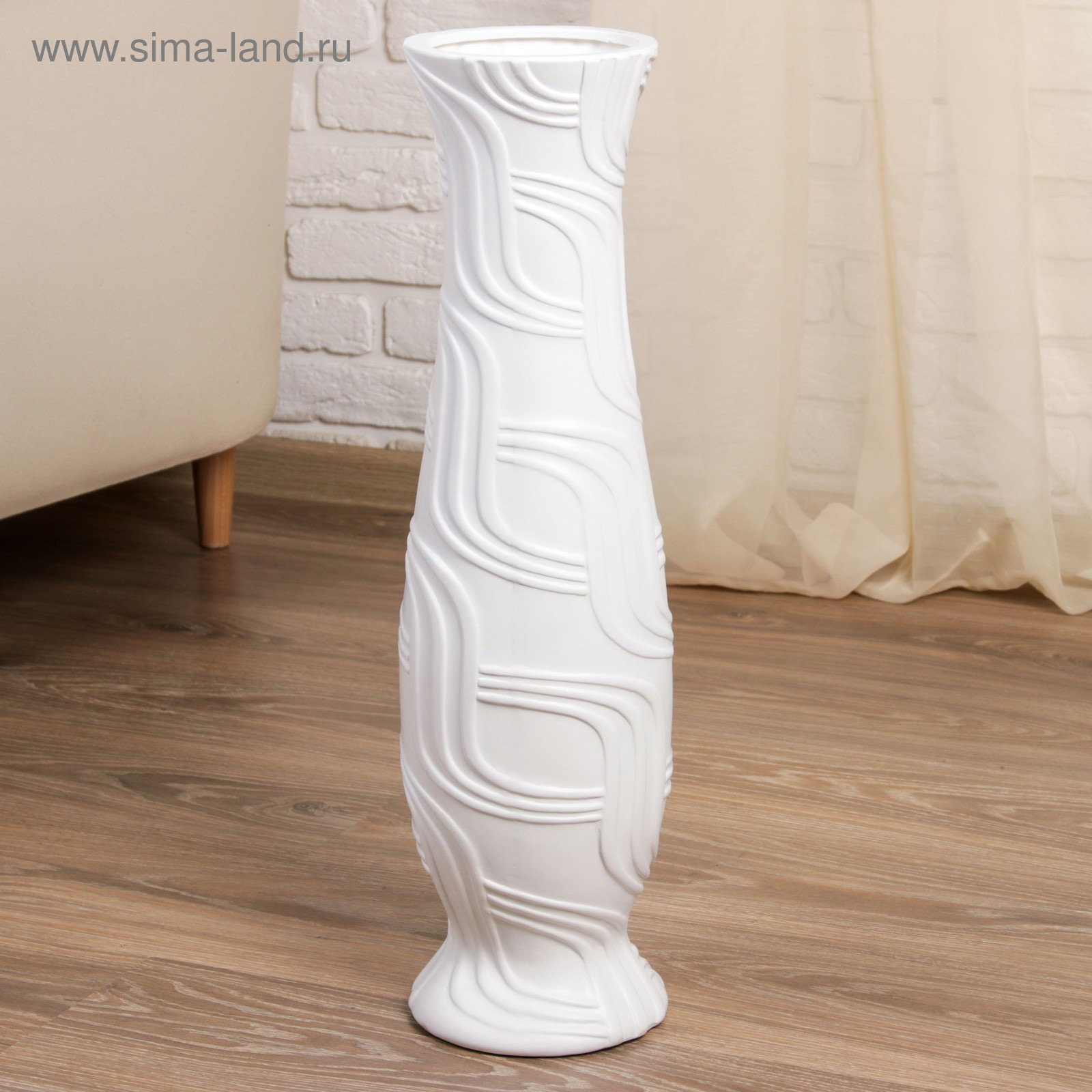 Ваза напольная "Геометрия", изгибы, h=60 см, белая, 15x15x60 см., Китай