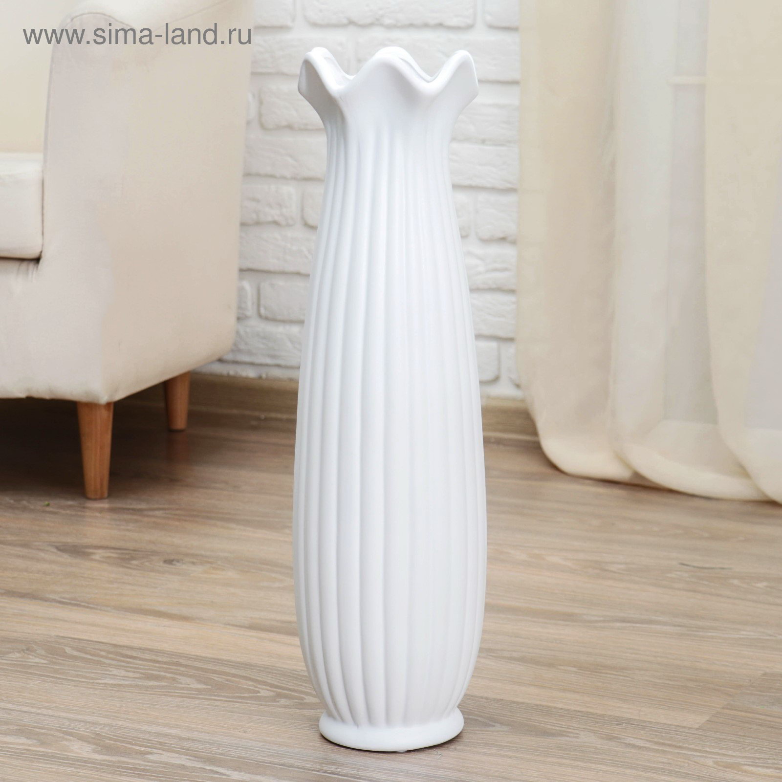 Ваза напольная "Геометрия", бутон, 16x60 см, керамика, белая, 15x60 см., Китай
