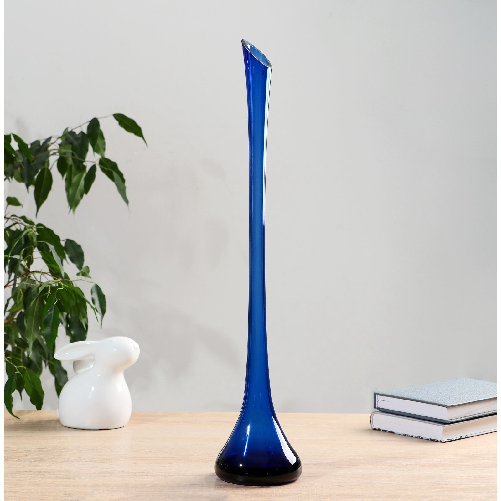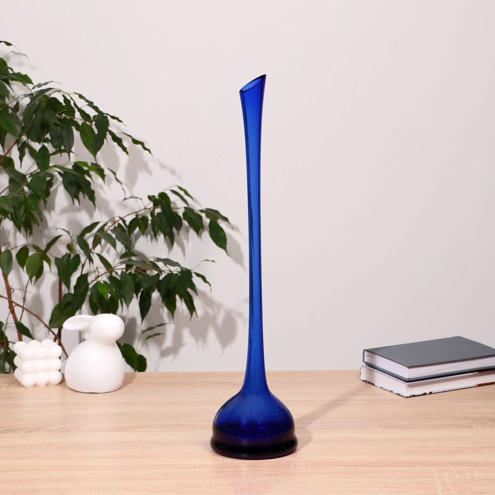 Ваза без декора "Высота", h=51 см, d горлышка 3x2.5 см, d основания 12 см, стекло, синяя, 12x12x51 см., Россия