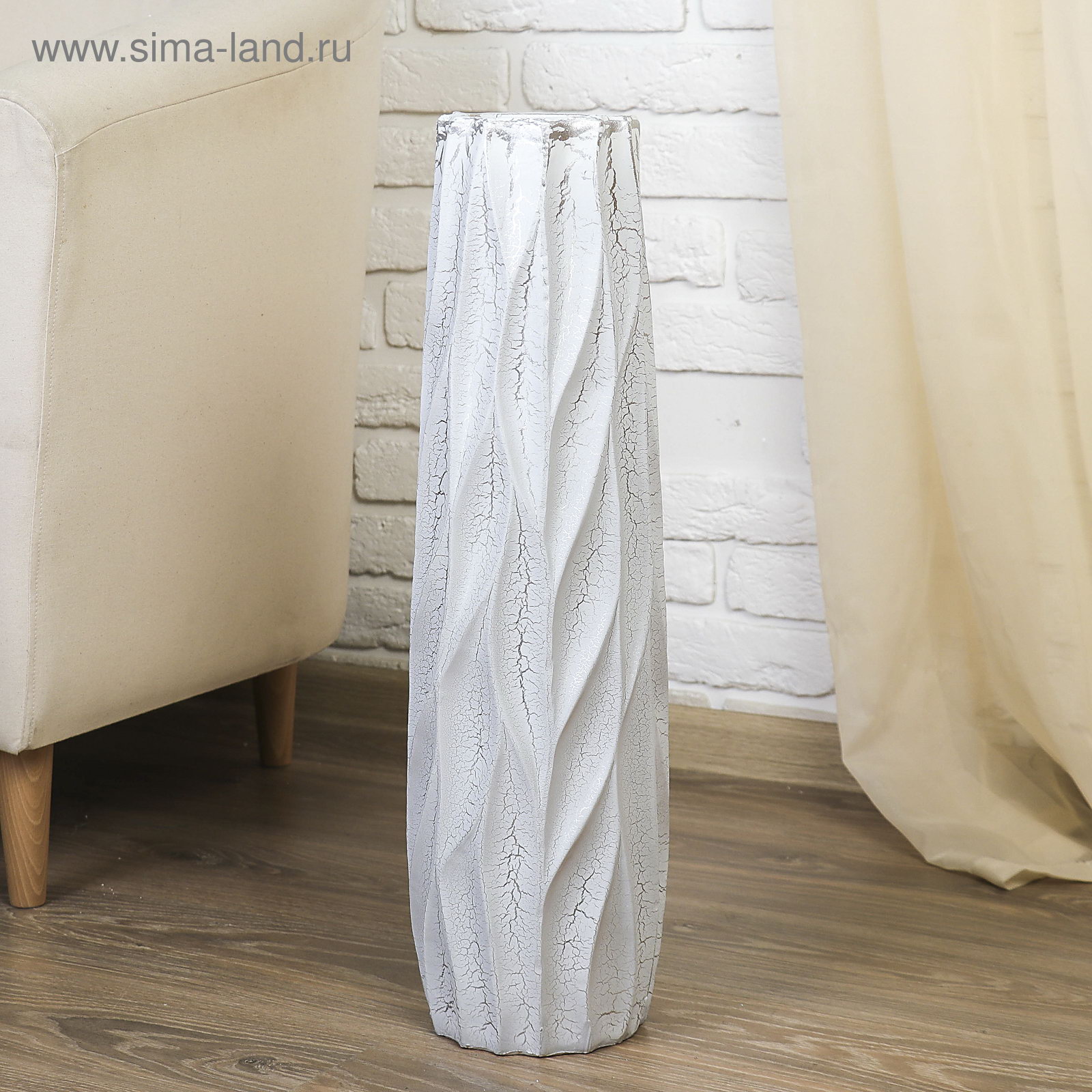 Ваза для цветов напольная "Айсберг", круглая, d=9 см, h=60 см, керамика, белая, 16x16x60 см., Китай
