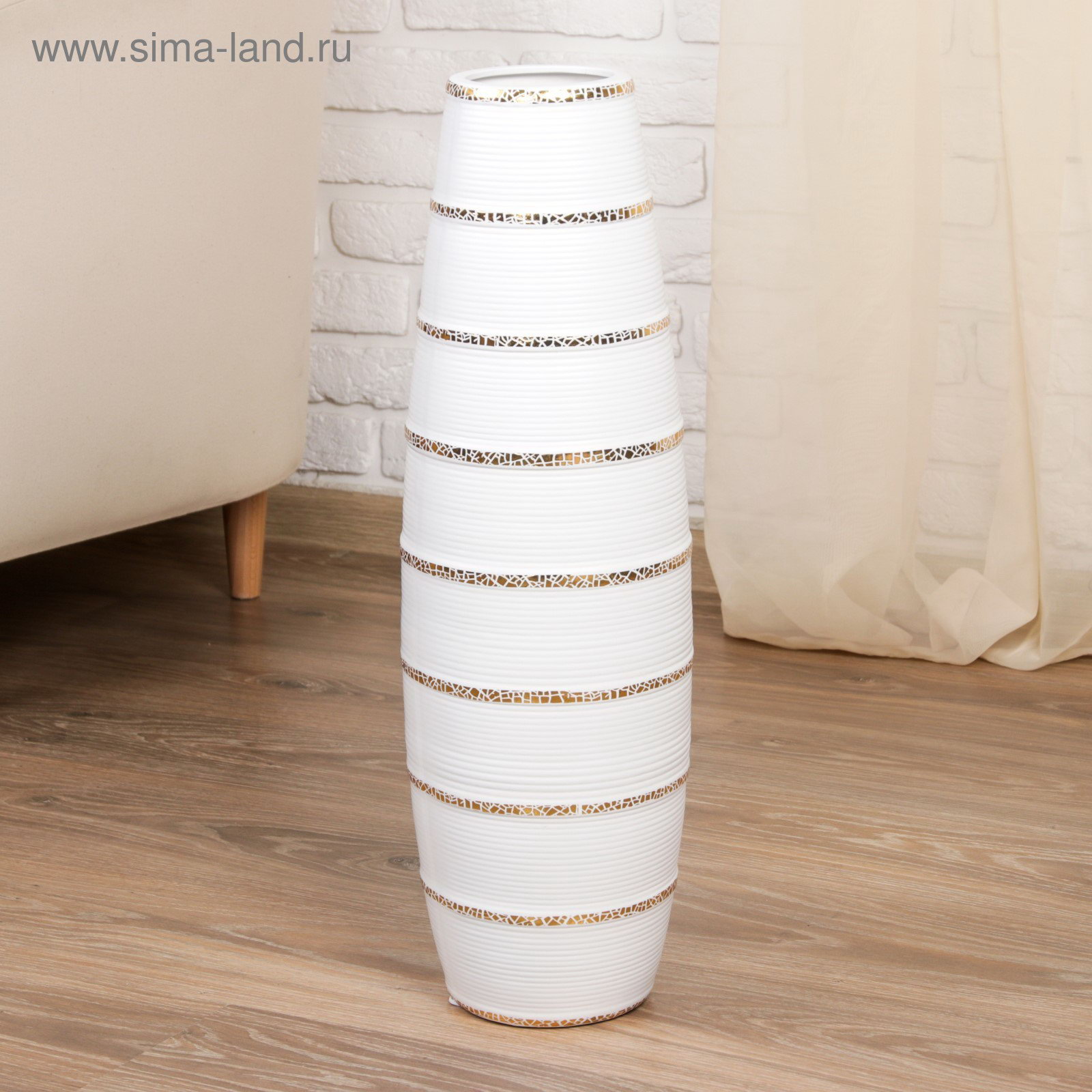 Ваза напольная "Геометрия люкс", полосы, h=60 см, керамика, белая, 11.5x60 см., Китай