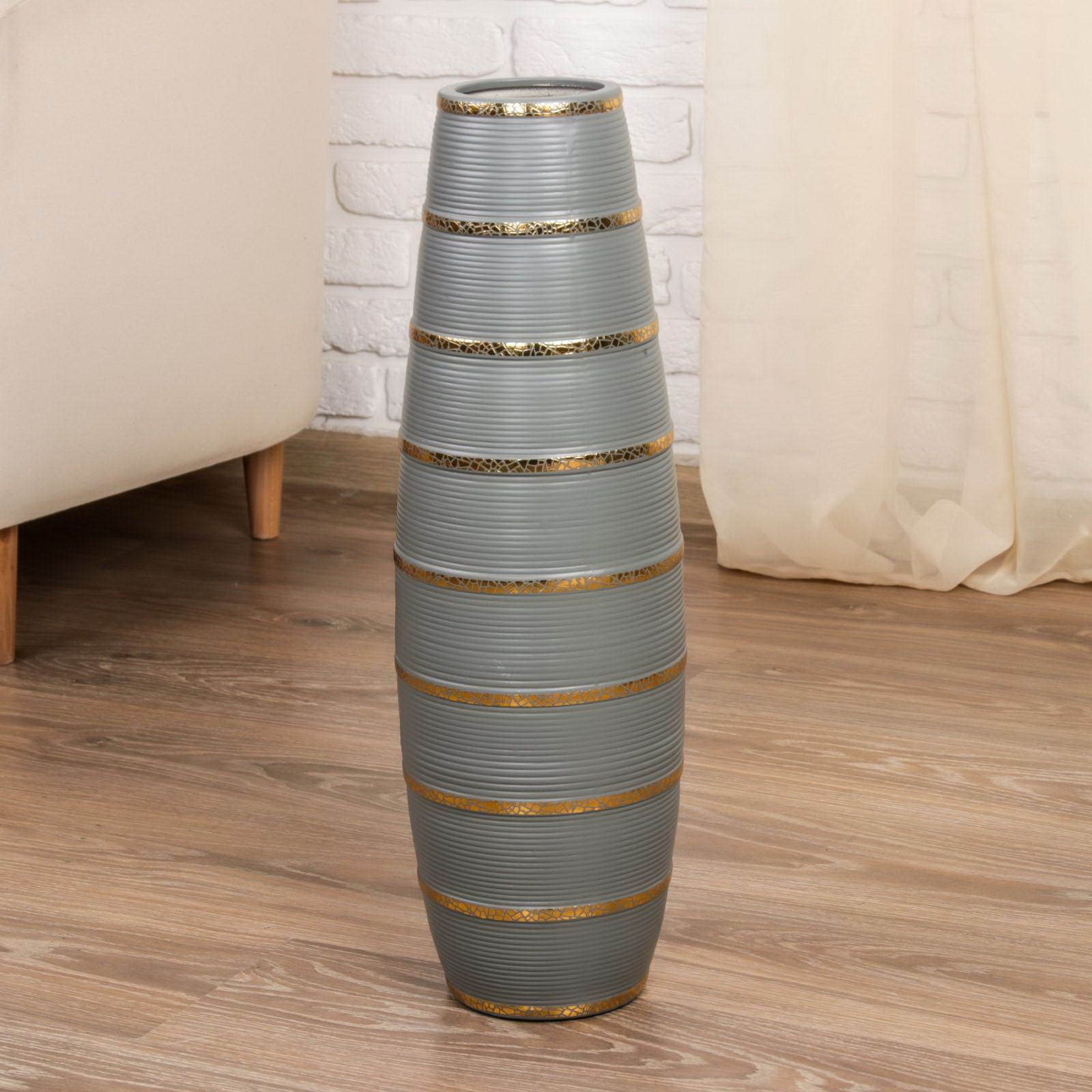 Ваза напольная "Геометрия люкс", полосы, h=60 см, серая, 11.5x60 см., Китай