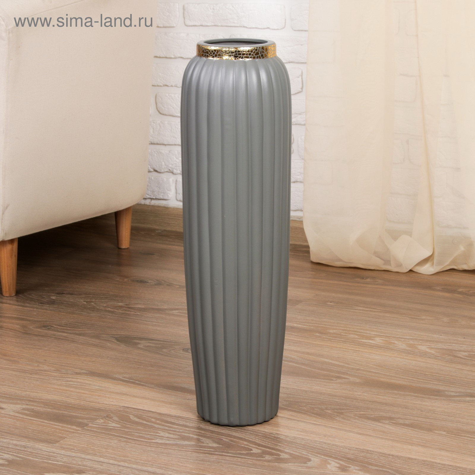 Ваза напольная "Геометрия люкс", вертикаль, d=9.5 см, h=60 см, керамика, серая, 12x60 см., Китай