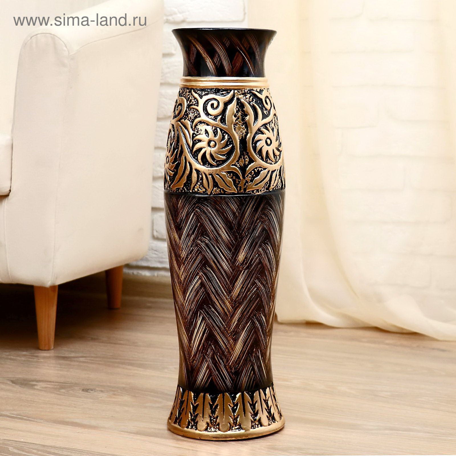 Размер упаковки: 20 x 20 x 62 см. Высота, мм: 600 Оформление: Декор золотистый tnved: 6913910000 Текстура: С рельефом Цвет: Коричневый Вид вазы: Напольная Высота, см: 60 Запрет реализации по сегментам: 00000000272 Добавьте теплоты и природной элегантности в интерьер! Напольная ваза "Цветы солнца" – это уникальное сочетание плетёной текстуры и яркой художественной росписи, созданное для тех, кто ценит натуральные мотивы. Коричневый фон подчеркивает выразительность декора, напоминая о солнечных лугах.