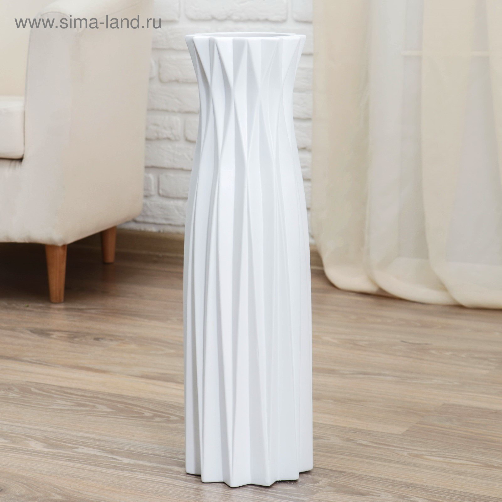 Ваза напольная "Геометрия", грани, 16x60 см, керамика, белая, 16x60 см., Китай