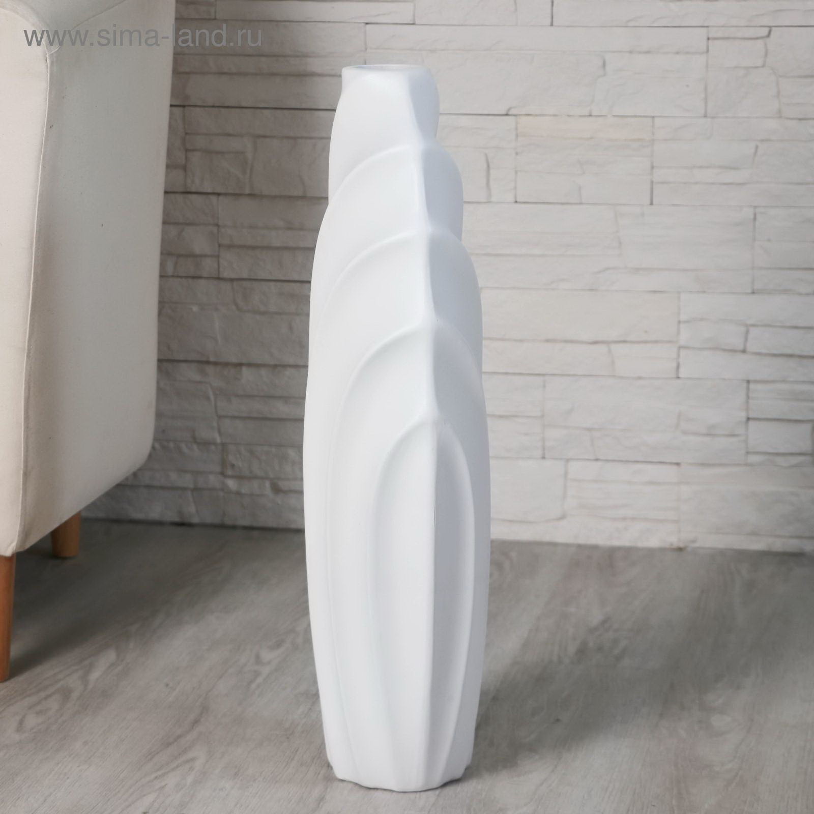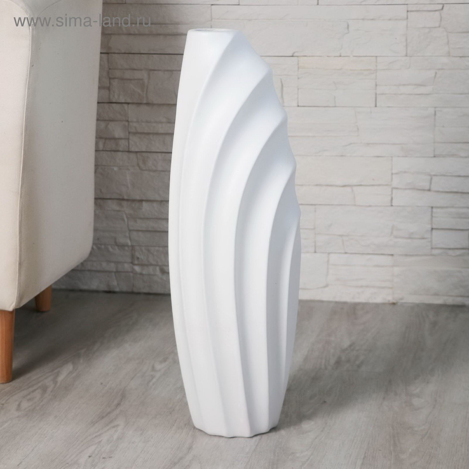 Ваза керамика напольная "Волны" 7х58 см, белый, 7x58 см., Китай