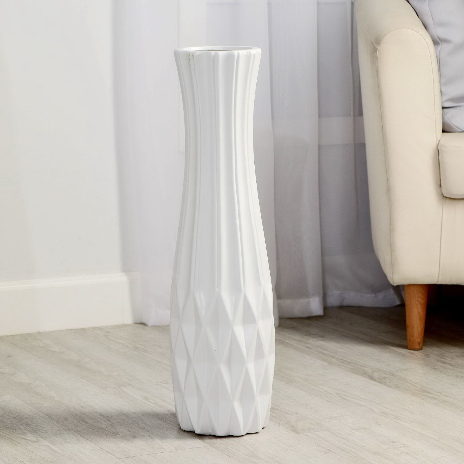Ваза напольная "Дея", 13.5x60 см, керамика, белая, 13.5x13.5x60 см., Китай