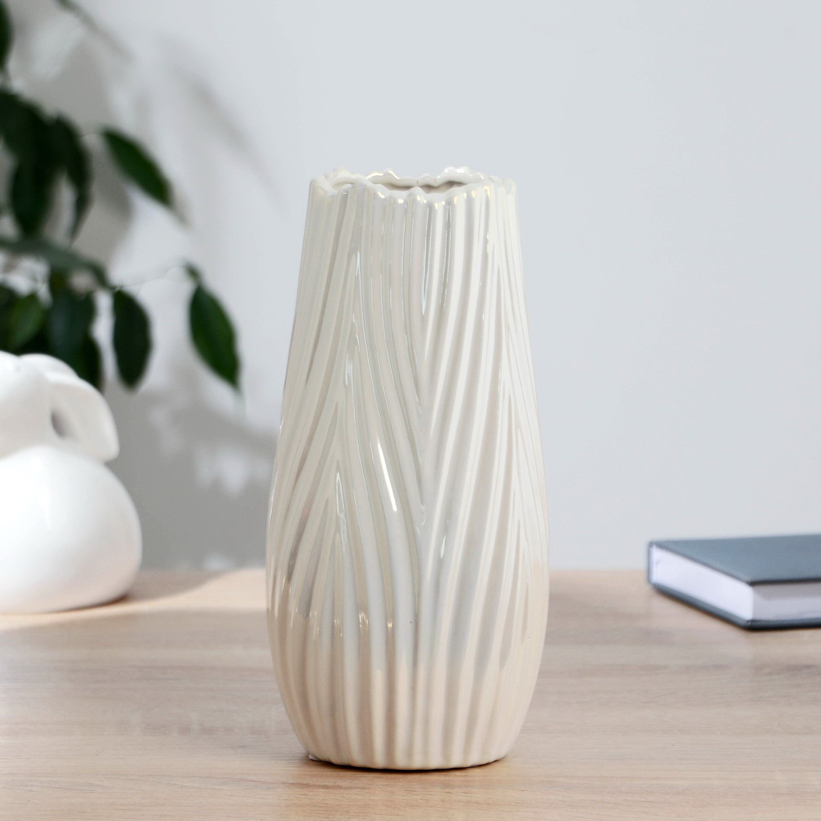 Ваза керамика настольная "Кирст перламутр" d-7.5 см, 24х12 см, белый, 12x24 см., Китай