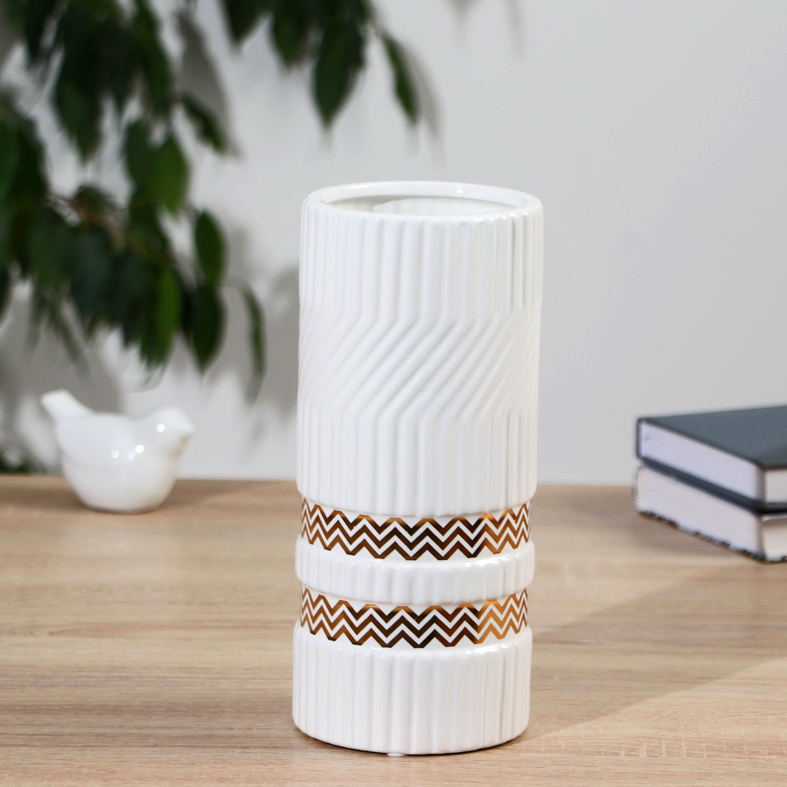 Размер упаковки: 11 x 23 x 11 см. Тематика праздника: 8 Марта tnved: 6913910000 Текстура: С рельефом Запрет реализации по сегментам: 00000000272 Вид вазы: Настольная Цвет: Белый Высота, см: 22.5 Белая классика для вашего интерьера. Керамическая ваза "Адель" это настольная ваза для цветов, которая сочетает в себе современный лаконичный дизайн и традиционное качество ручной работы. Её рельефная поверхность и чистая белая глазурь создают игру света и тени, добавляя пространству объема и изящества.