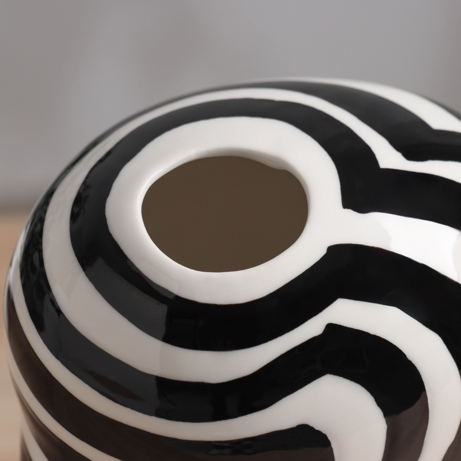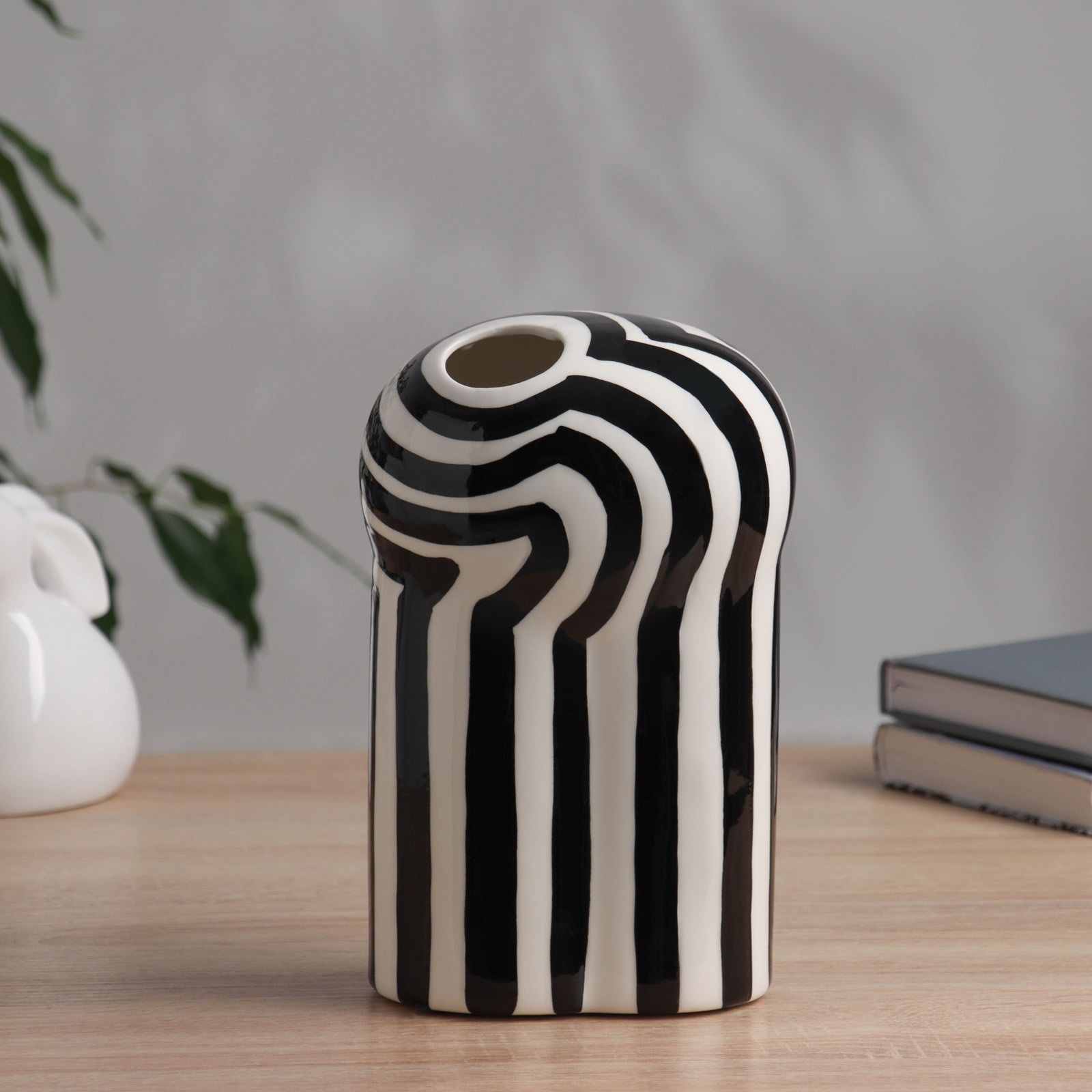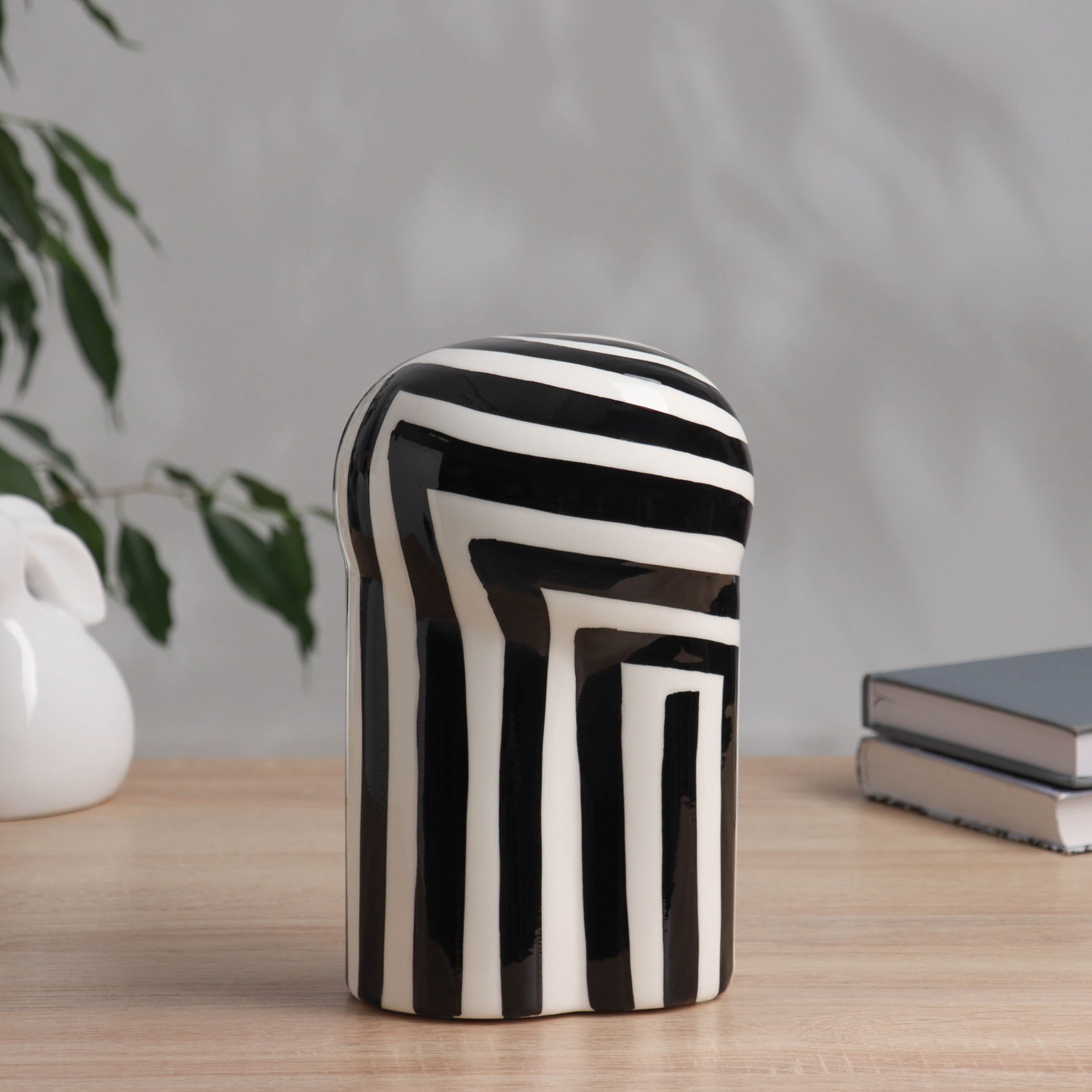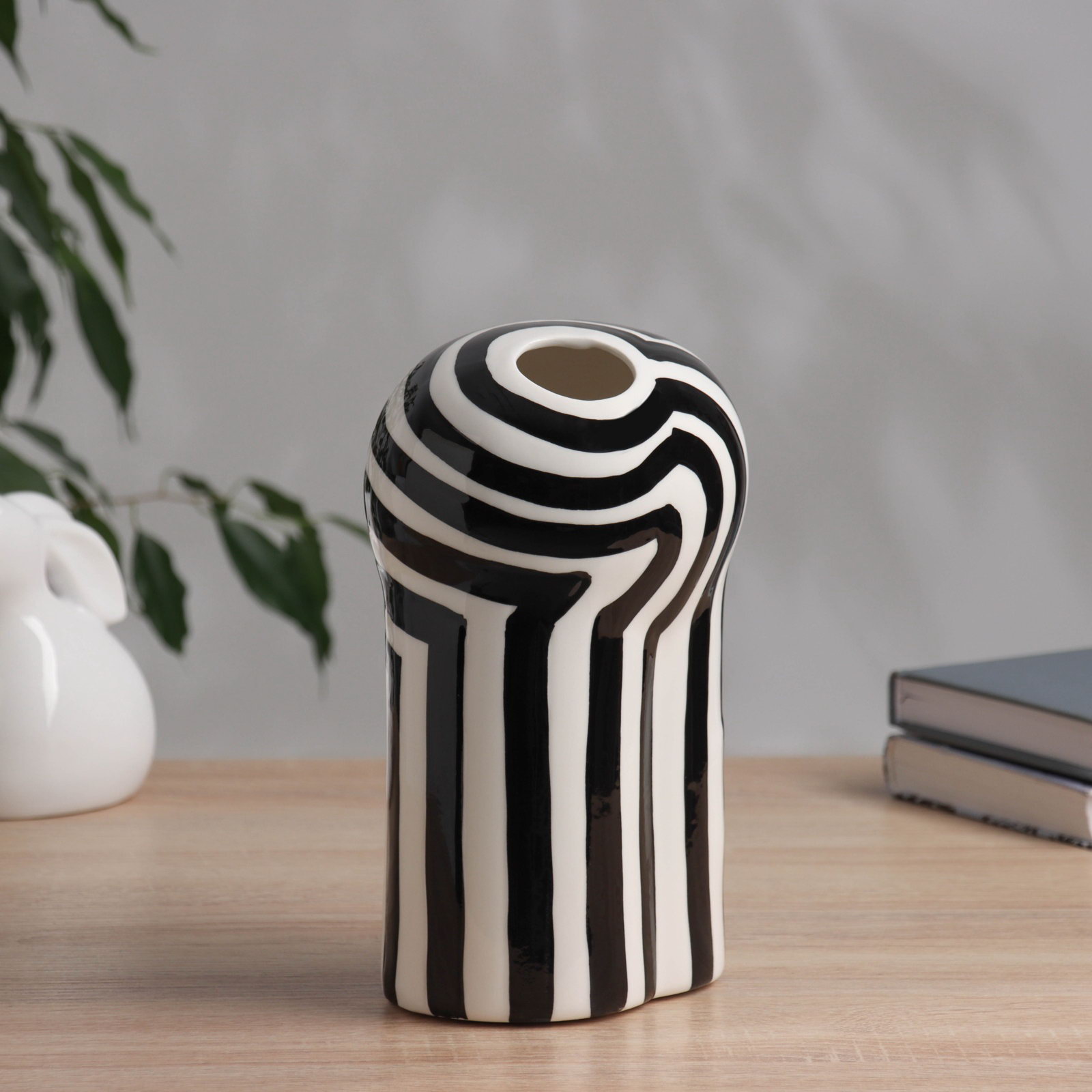 Ваза "Пикассо", объём в полоску, 22x12.5 см, ручная роспись, керамика, чёрно-белая, 12.5x22 см., Китай