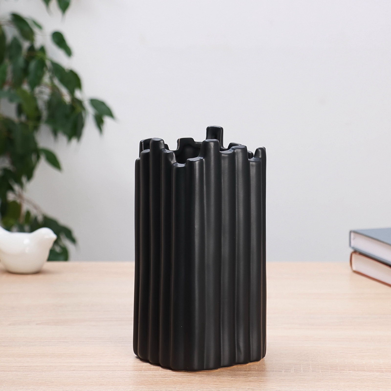 Почему выбирают эту вазу Ваза не только функциональна, но и эстетична. Она подходит для живых или сухих цветов, а также может использоваться как самостоятельный декоративный элемент. Её рельефная поверхность привлекает внимание, а чёрный цвет добавляет интерьеру глубины и изысканности. Идеи использования