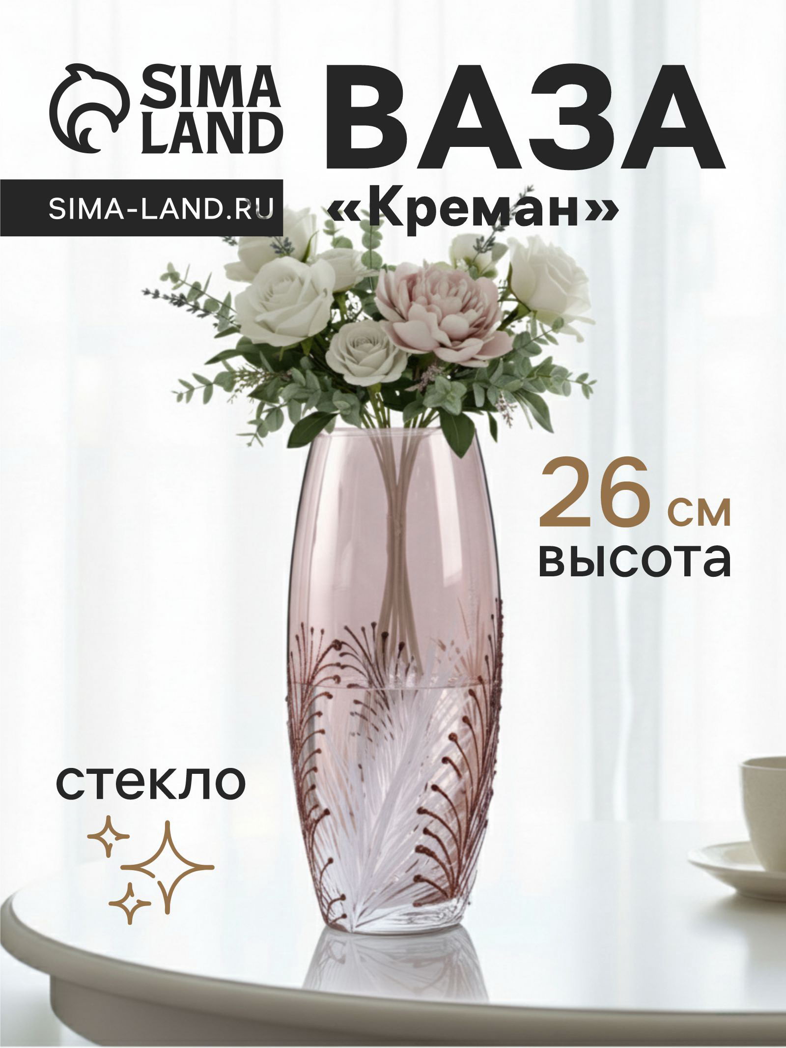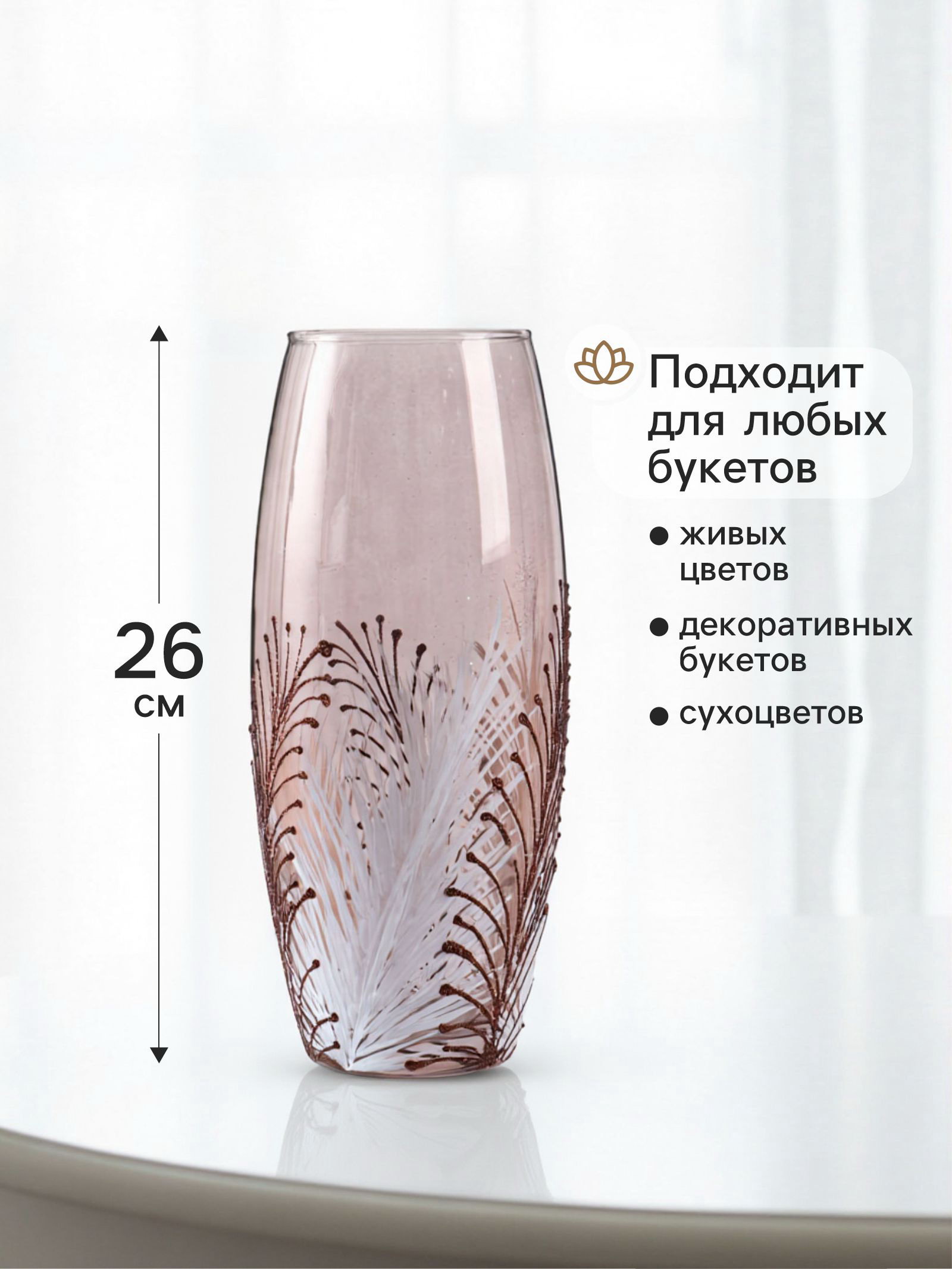 Размер упаковки: 11.5 x 11.5 x 27 см. tnved: 7013500000 Температурное ограничение: Нет Запрет реализации по сегментам: 00000000272 Высота, см: 26 Вид вазы: Настольная Цвет: Коричневый | ||