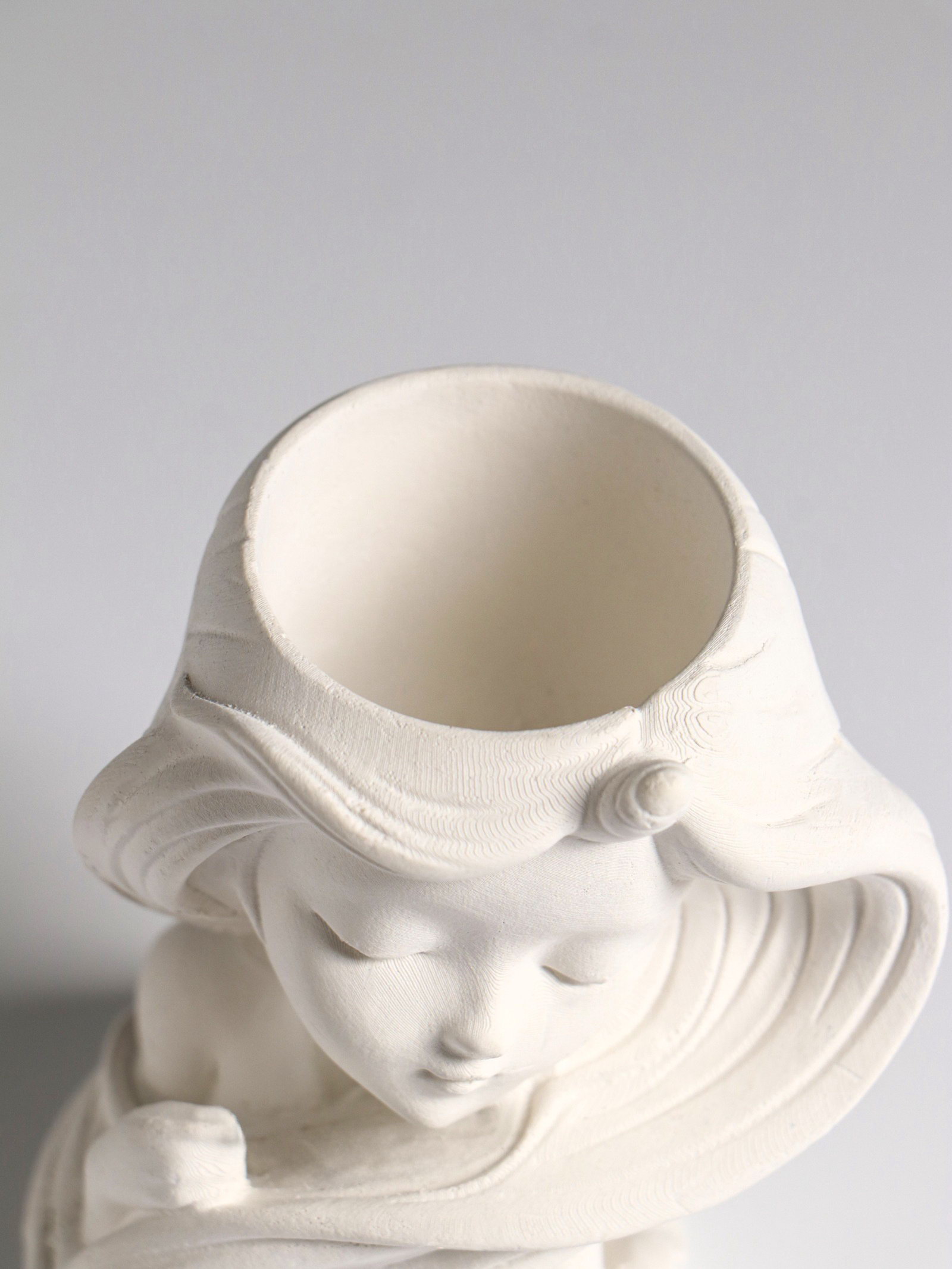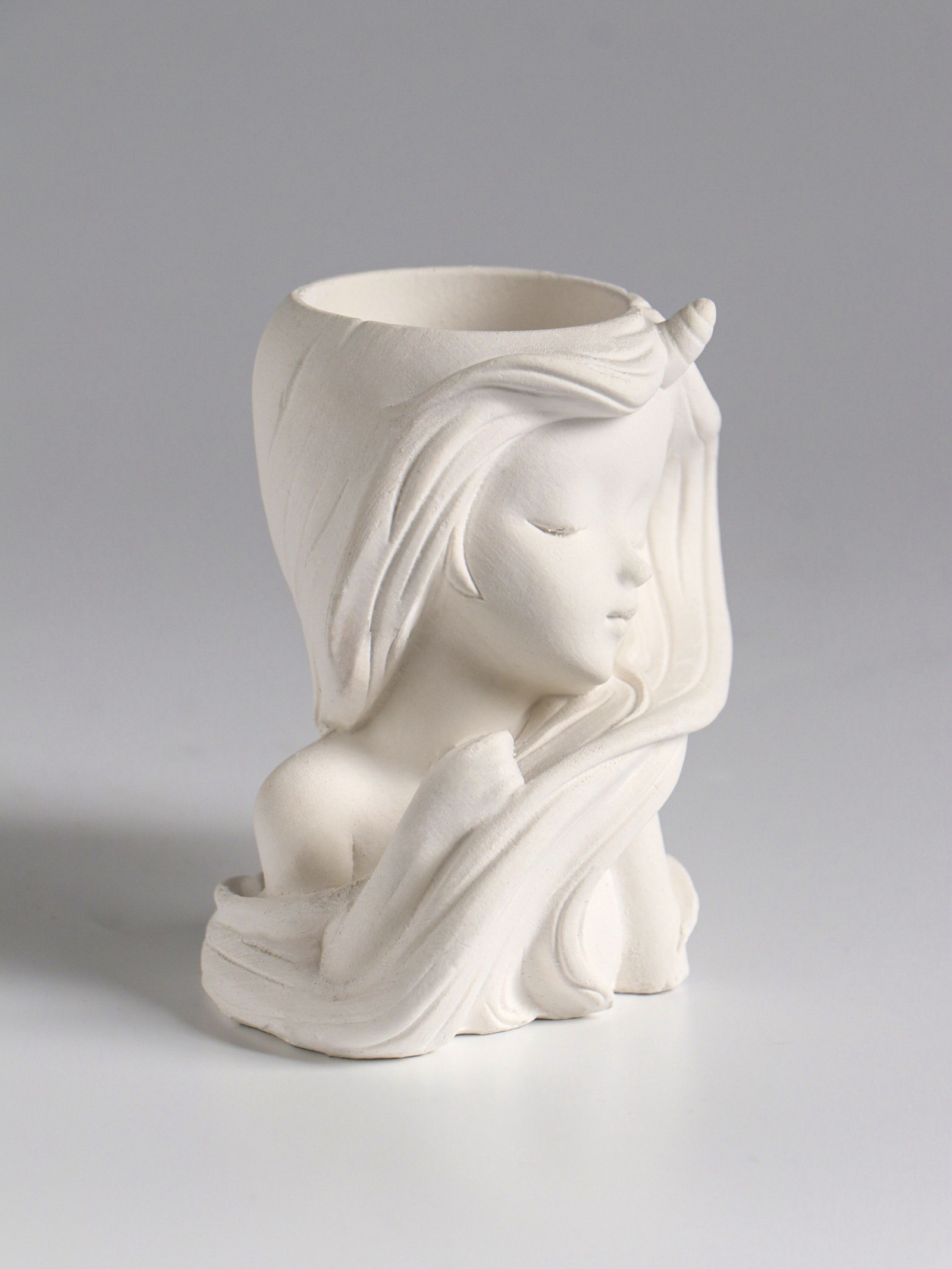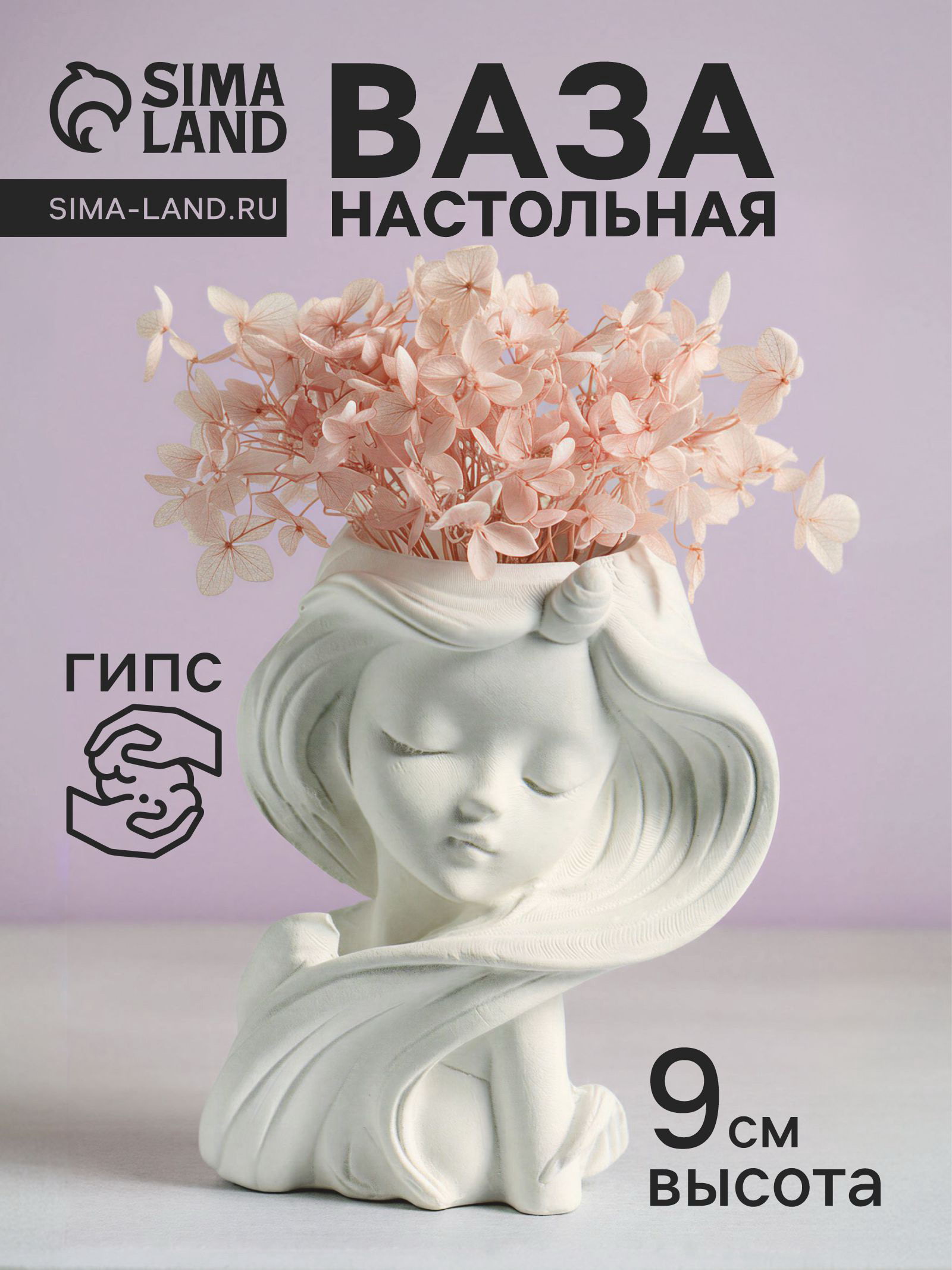 Ваза "Девушка с длинными волосами", 6x8x9 см, гипс, белая, Хорошие сувениры, Россия