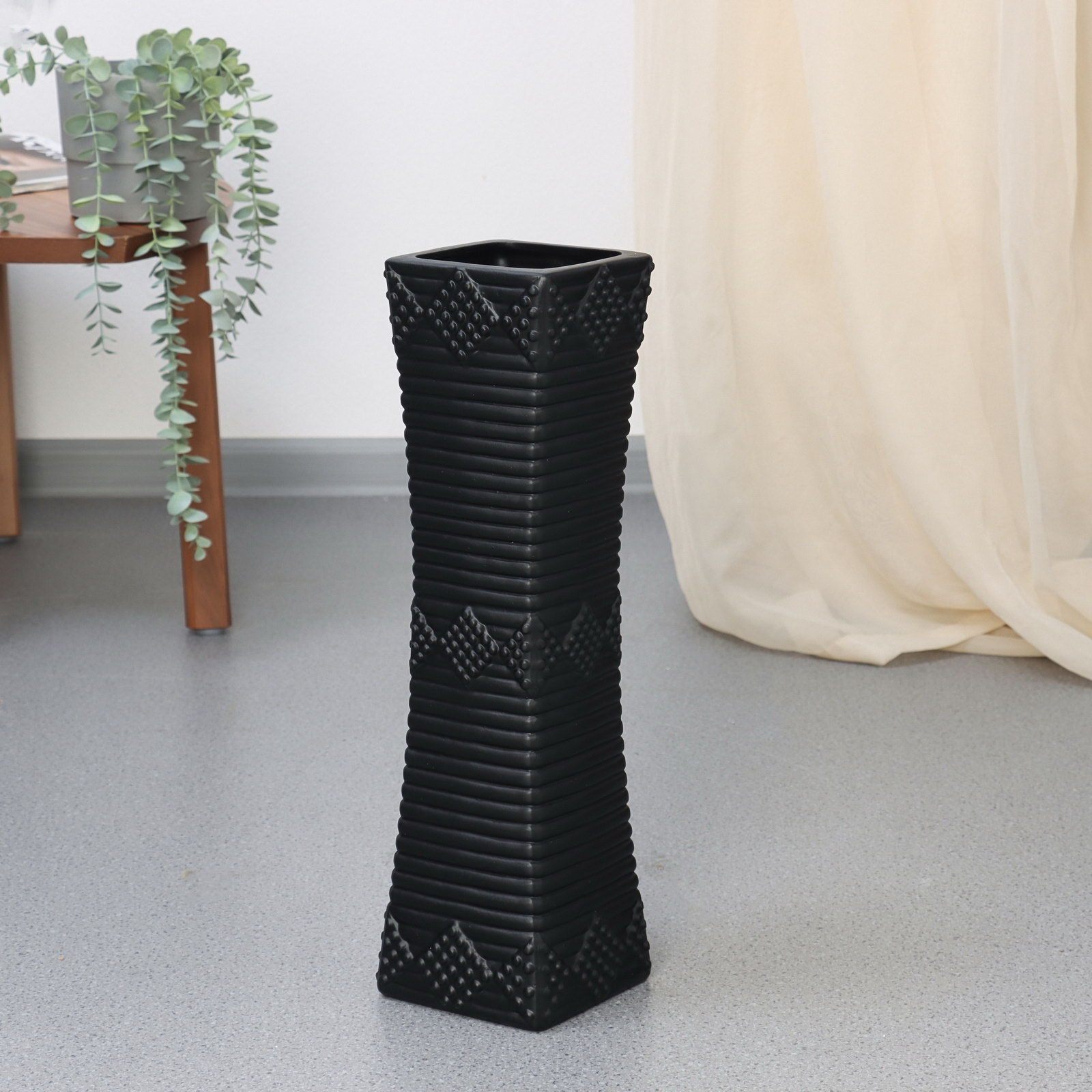 Ваза напольная "Харви", 46x12 см, керамика, чёрная, 12x46 см., Китай