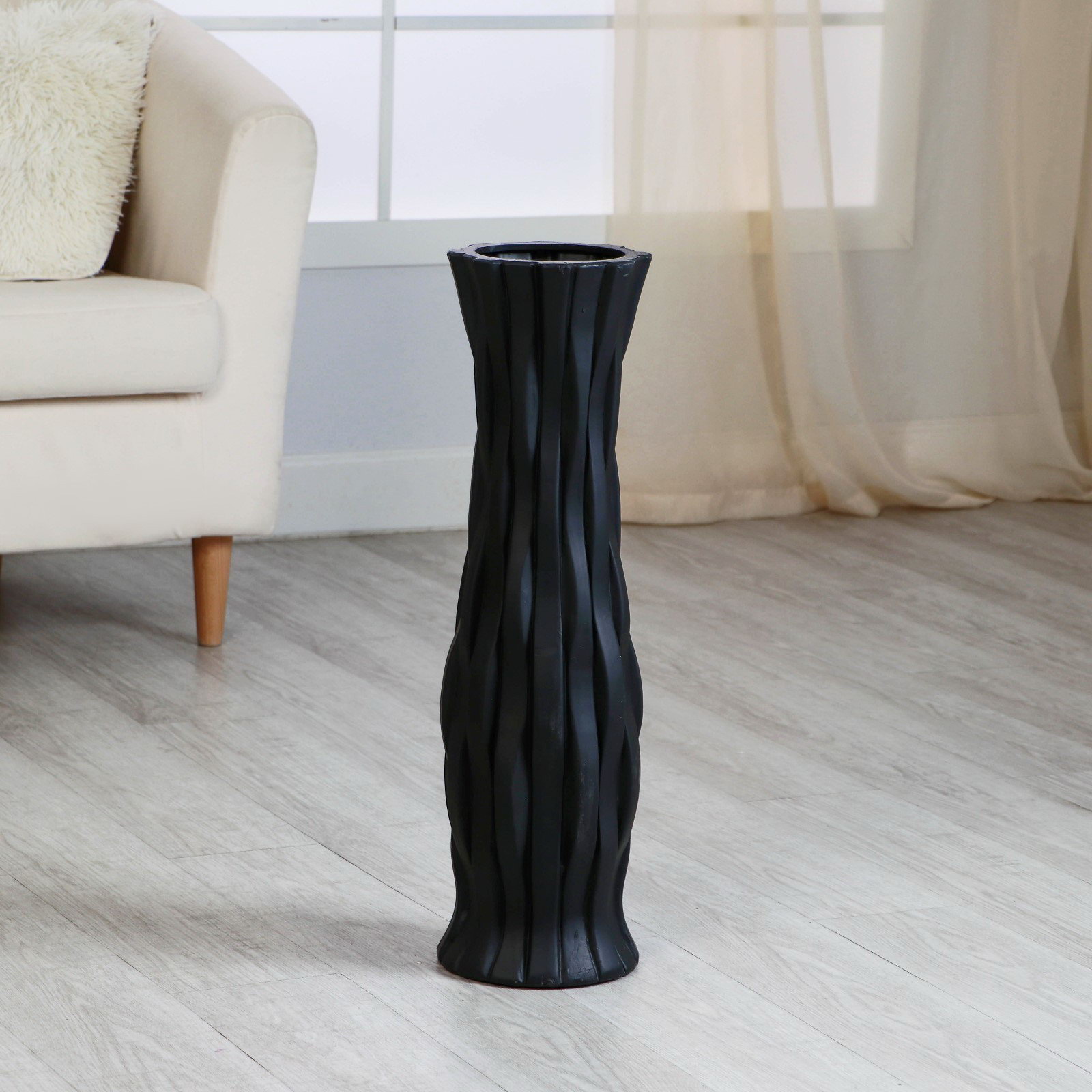 Где использовать вазу: Высокая чёрная ваза станет ключевым элементом в гостиной у дивана, в прихожей для создания первого впечатления или в спальне для дополнения минималистичного интерьера. Её строгий силуэт гармонично впишется в скандинавский стиль, лофт или современный минимализм. "Мавис" не просто сосуд для цветов, а полноценный предмет декора, который работает на образ всего помещения. | ||