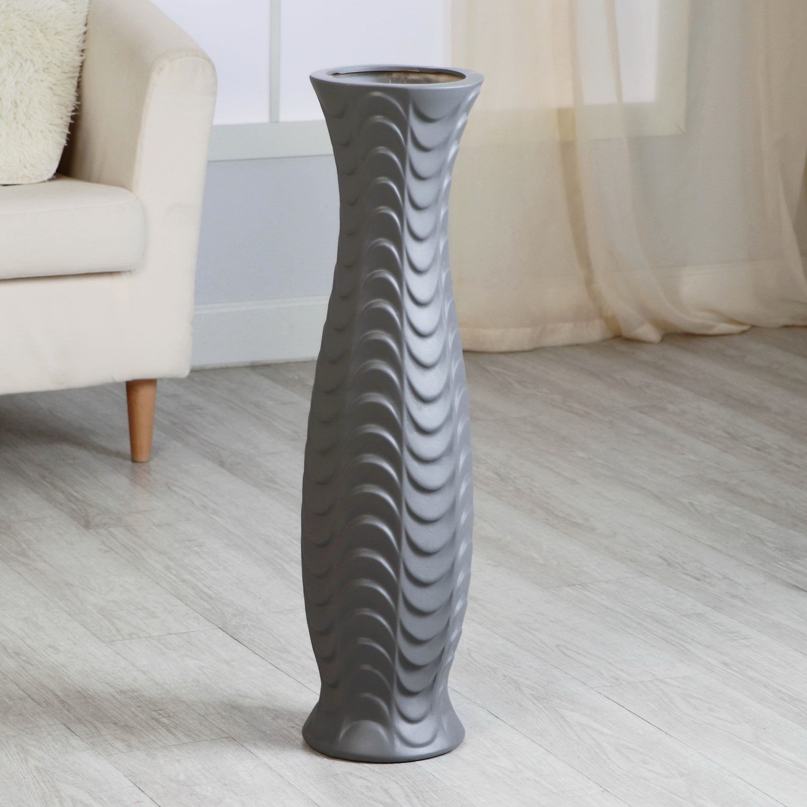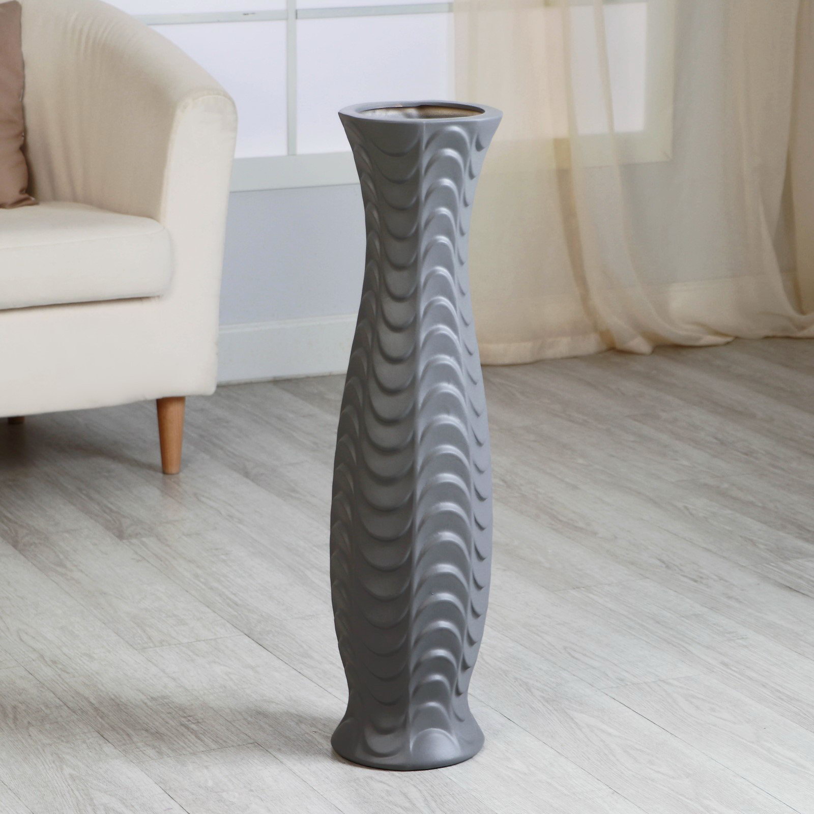 Ваза напольная "Седар", волна, 17x75 см, керамика, серая, 17x75 см., Китай