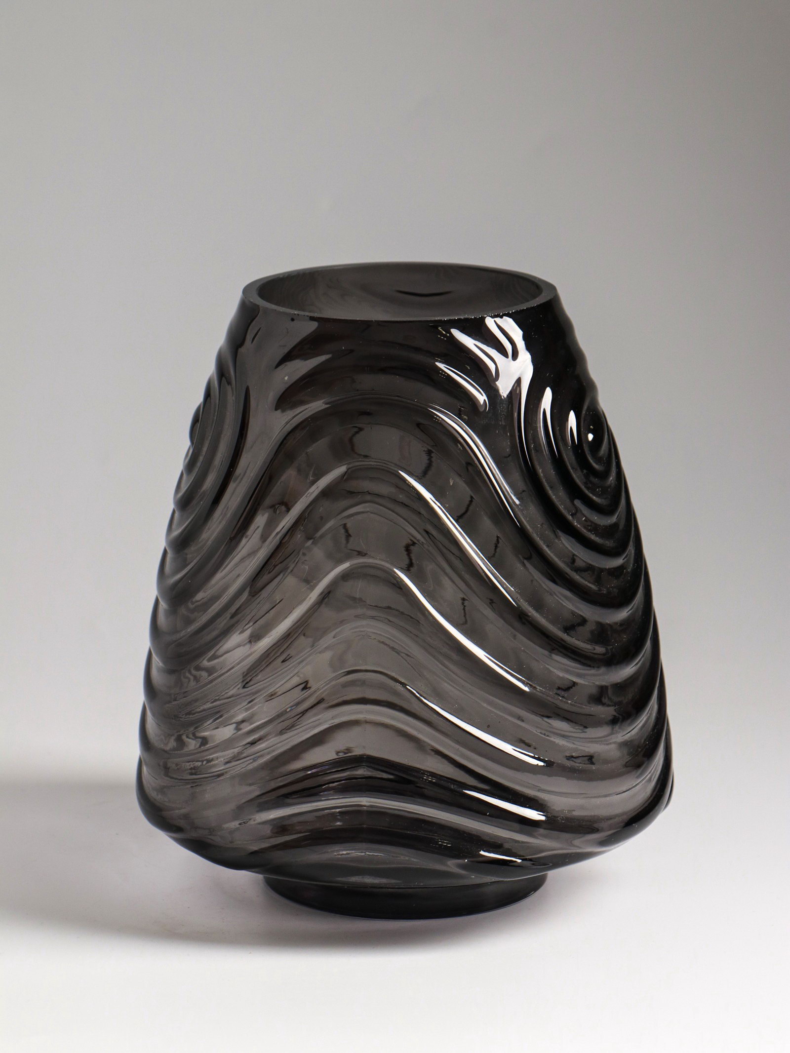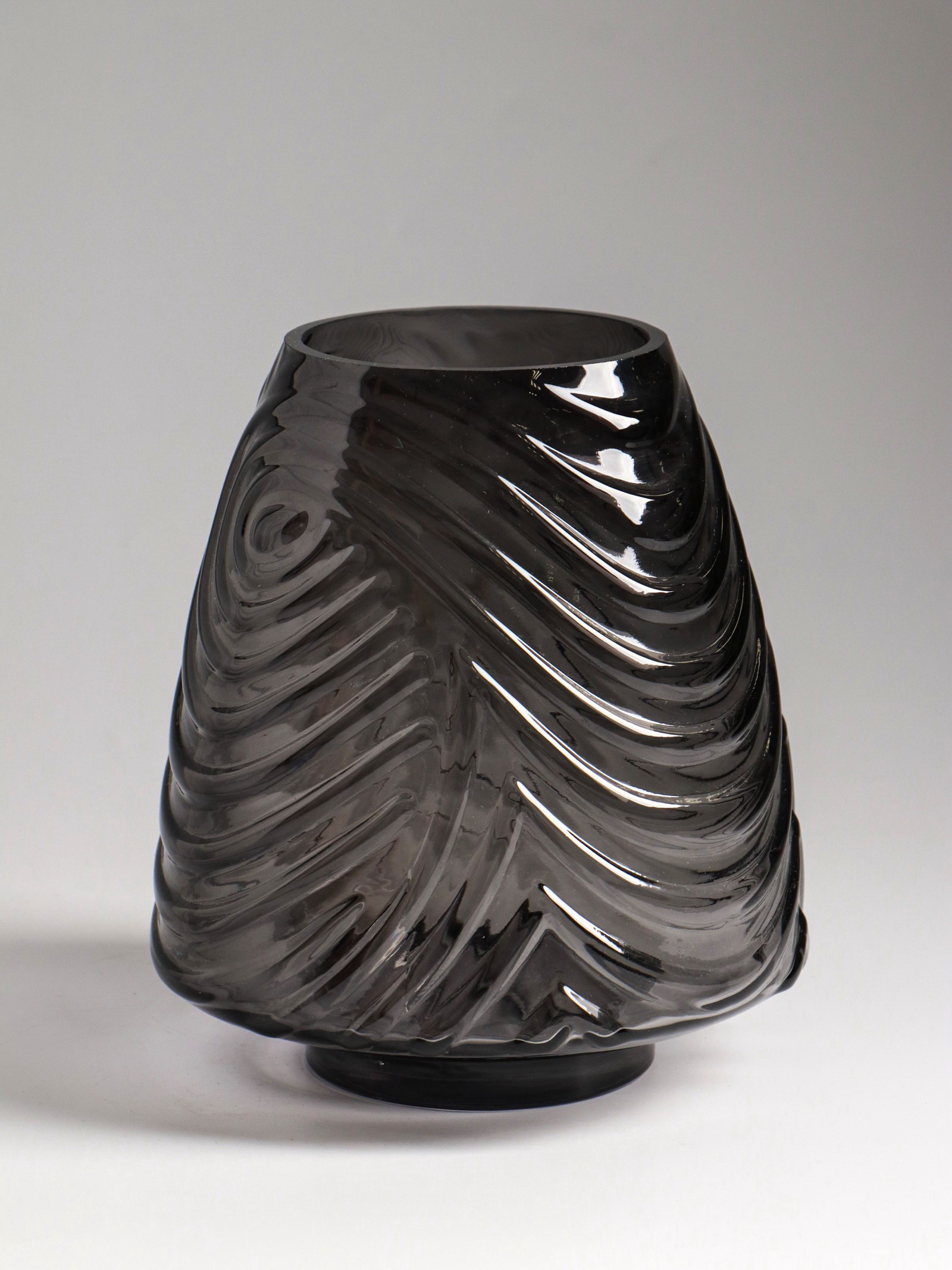 Ваза "Флер", 19.5x16 см, стекло, серая, 16x19.5 см., Китай