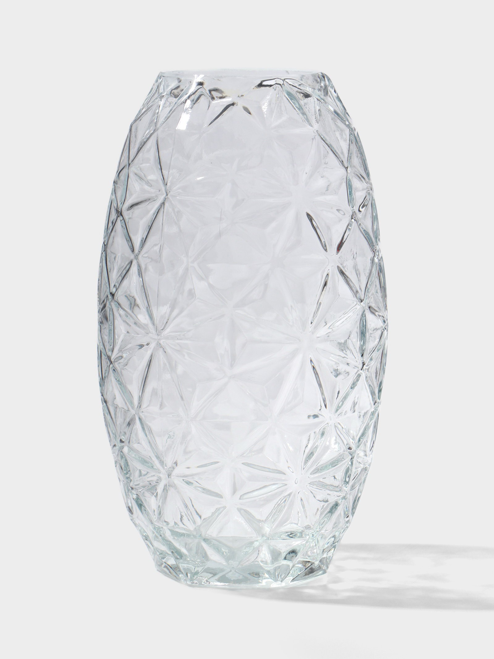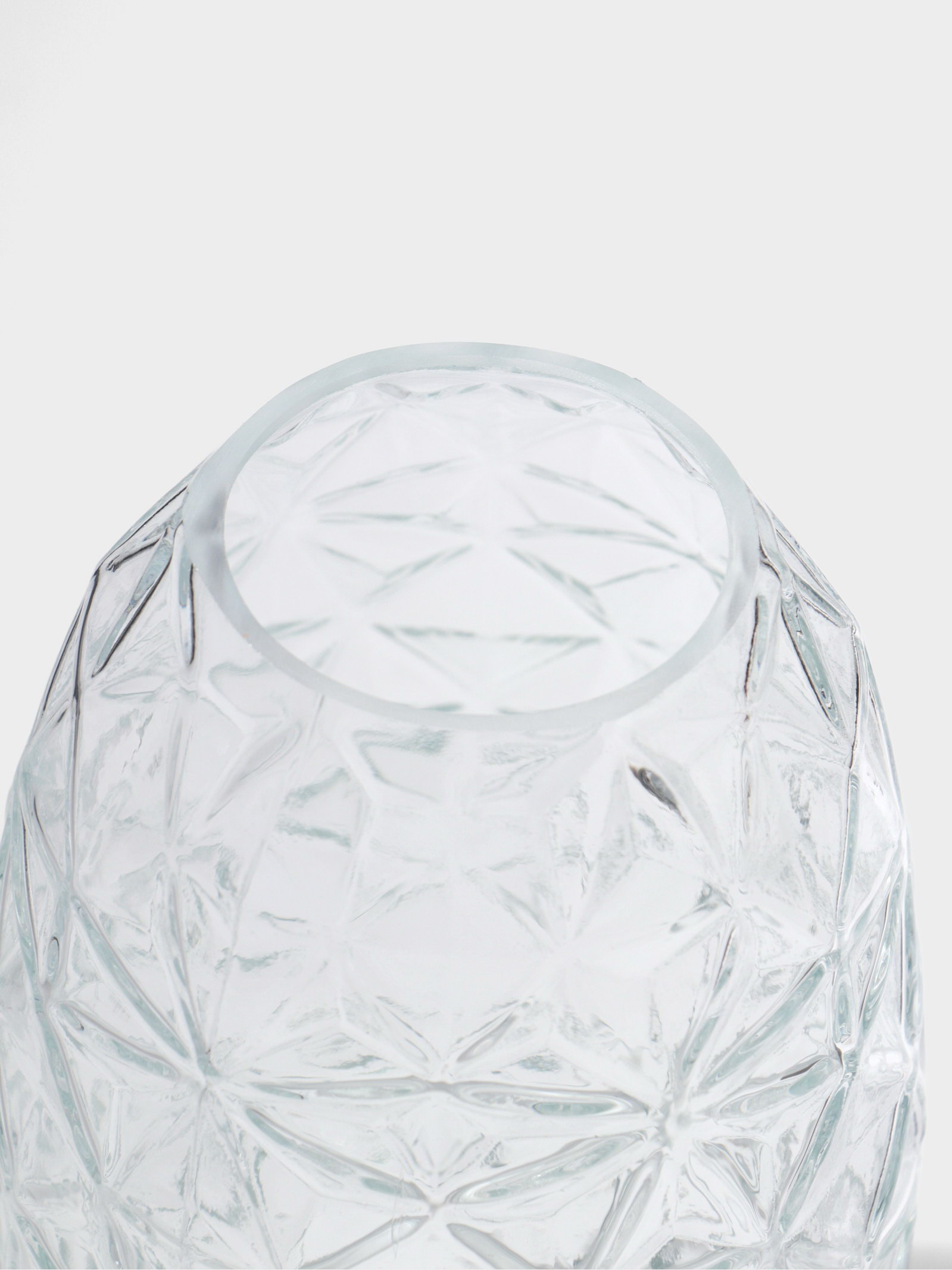 Размер упаковки: 13 x 13 x 24 см. tnved: 7013990000 Запрет реализации по сегментам: 00000000272 Вид вазы: Настольная Цвет: Прозрачный Высота, см: 23.5 Текстура: С рельефом Стеклянная гармония для вашего интерьера. Ваза "Гунвор" настольная ваза из прозрачного стекла с рельефной поверхностью. Её лаконичная форма и игра света на гранях создают современный акцент, не перегружая пространство. Идеальный выбор для тех, кто ценит сдержанную эстетику и качественные материалы.