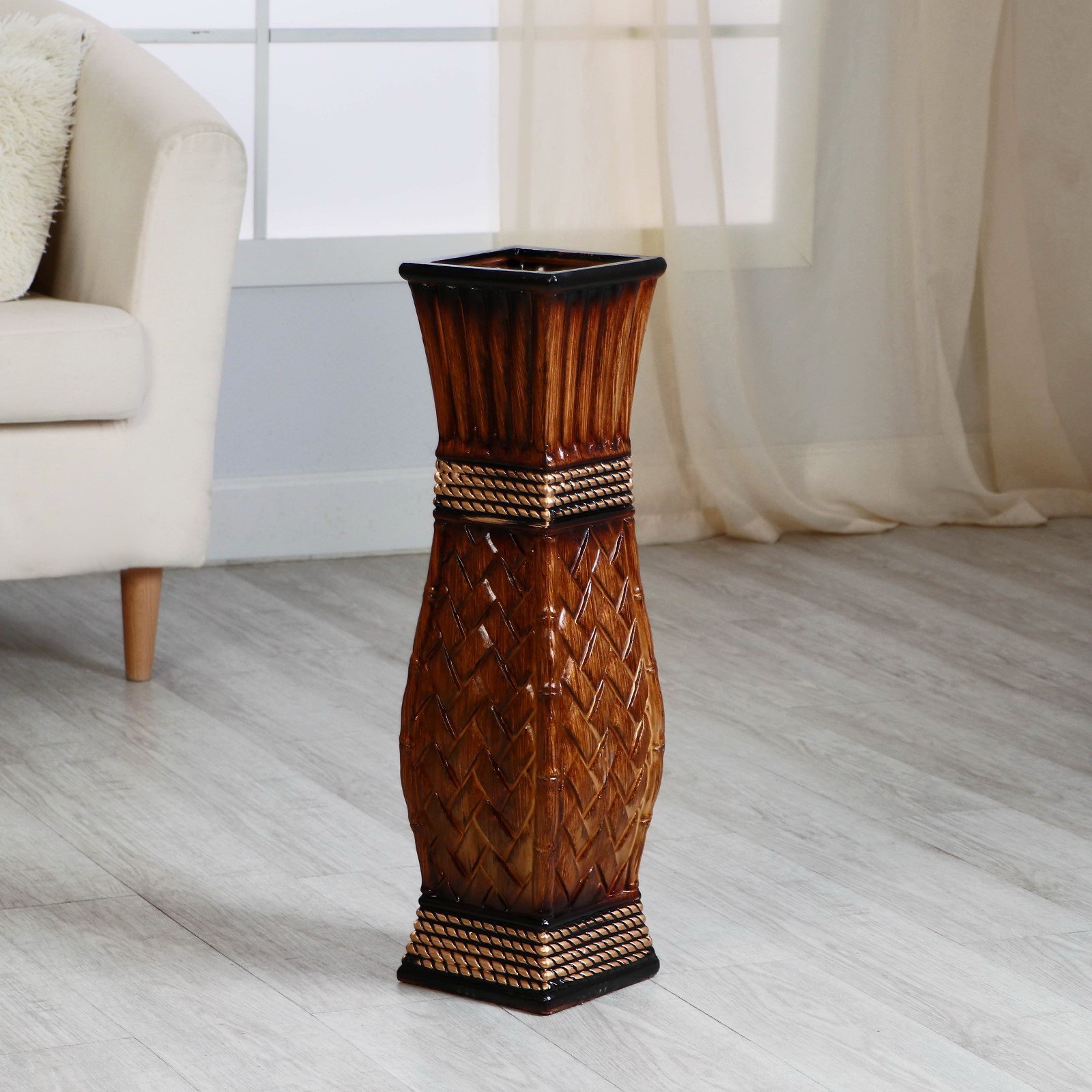 Размер упаковки: 17.5 x 62 x 17.5 см. tnved: 6913910000 Вид вазы: Напольная Высота, см: 60 Цвет: Коричневый Запрет реализации по сегментам: 00000000272 Элегантно дополняя ваш интерьер, напольная керамическая ваза "Лирика" станет акцентным элементом в вашем доме. Высота вазы 60 см делает её подходящей для создания выразительных цветочных композиций в гостиной или холле. Богатый коричневый цвет и рельефное оформление создают текстуру, притягивающую взгляд. Эта керамическая ваза придаст утончённости и тепла любому помещению. Преимущества