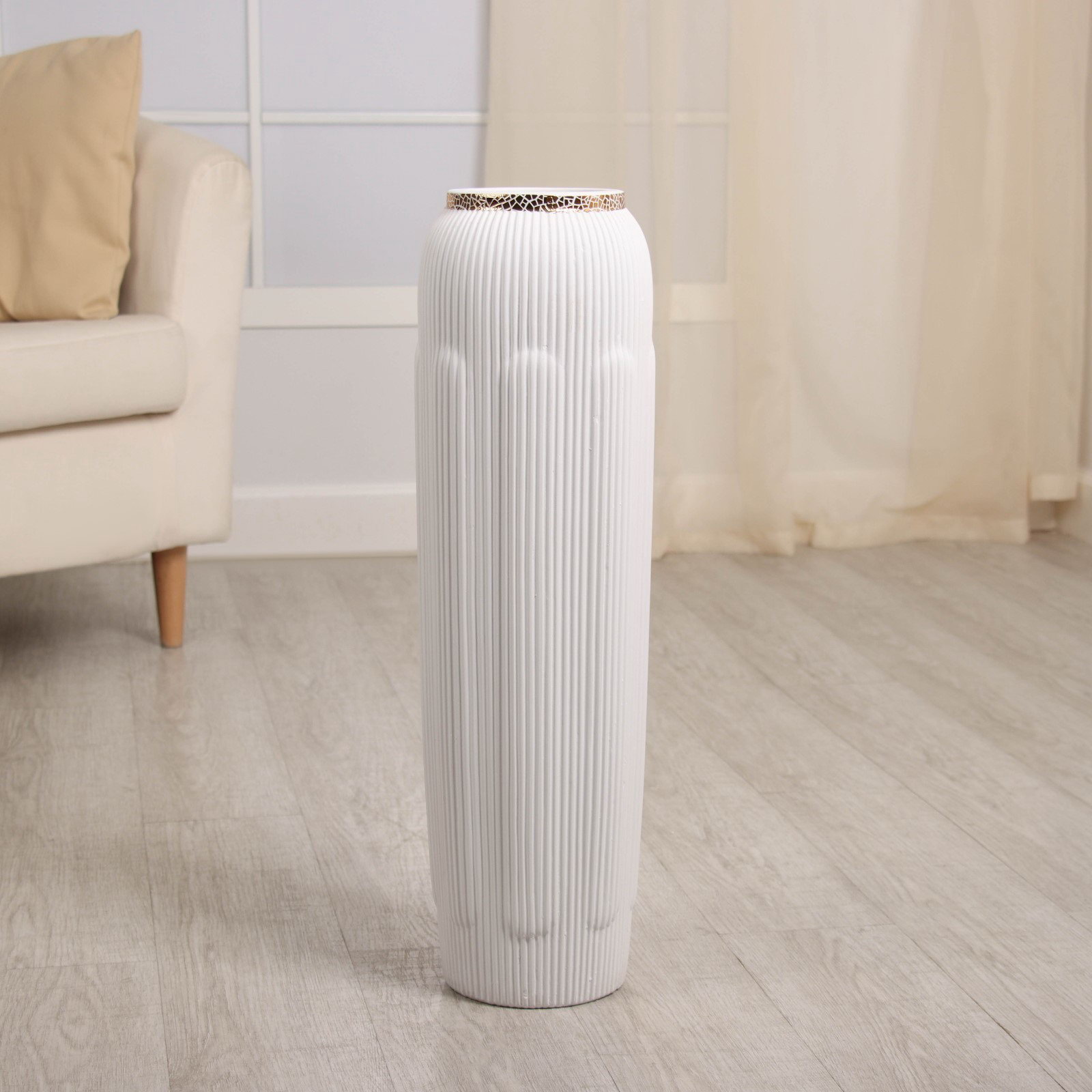 Ваза напольная "Кэйлеб", вертикаль, h=60 см, керамика, белая, Китай
