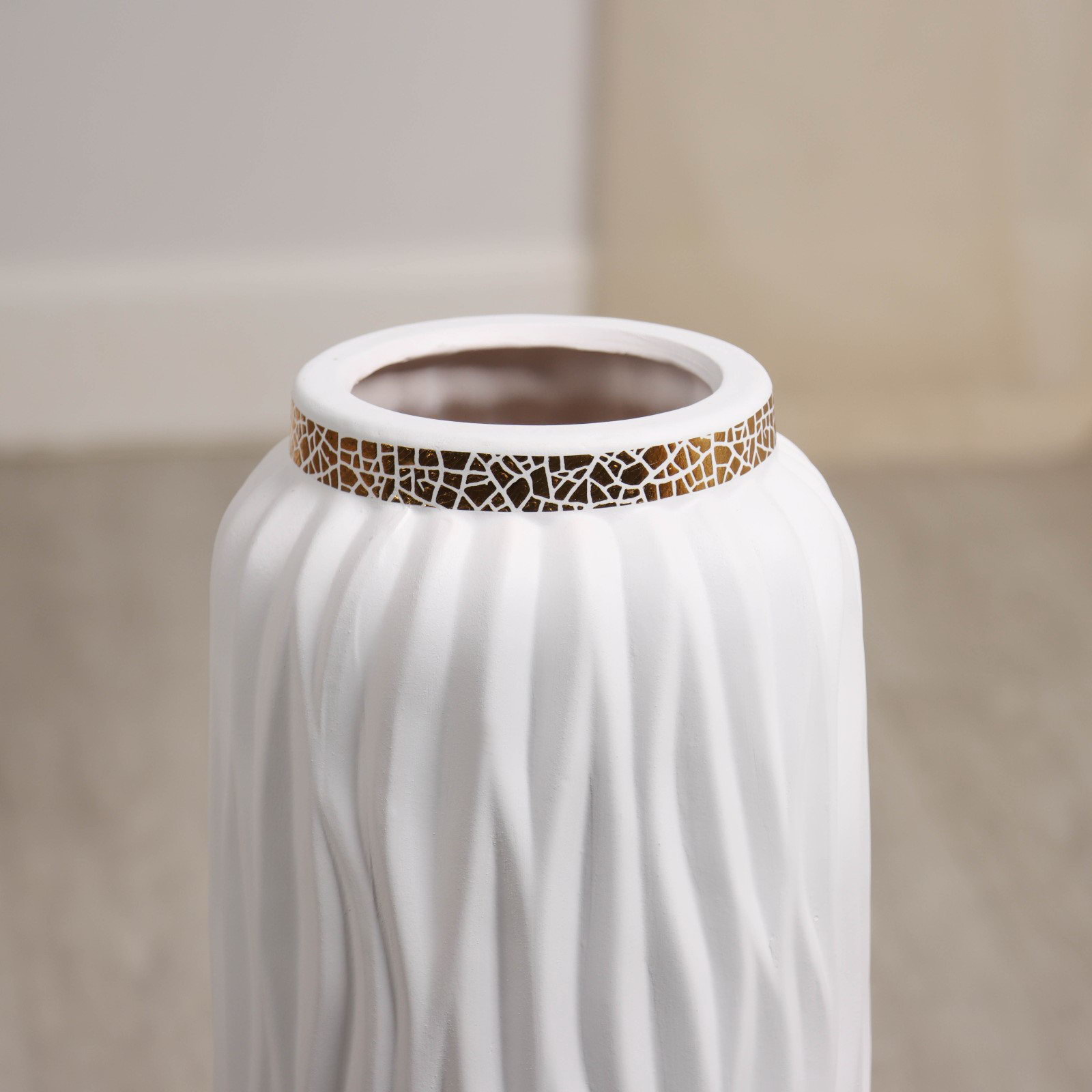 Размер упаковки: 17 x 17 x 62 см. Запрет реализации по сегментам: 00000000272 Вид вазы: Напольная Цвет: Белый Высота, см: 60 tnved: 6913910000 Текстура: С рельефом Элегантная белая керамическая напольная ваза поможет преобразить интерьер и внести в него нотки изысканности и стиля. Высота в 60 см делает её ключевым акцентом в любой комнате, привлекая внимание своим утончённым дизайном. Созданная из высококачественной керамики, эта декоративная деталь гармонирует с современными и классическими интерьерами, создавая ощущение тепла и уюта. Характеристики