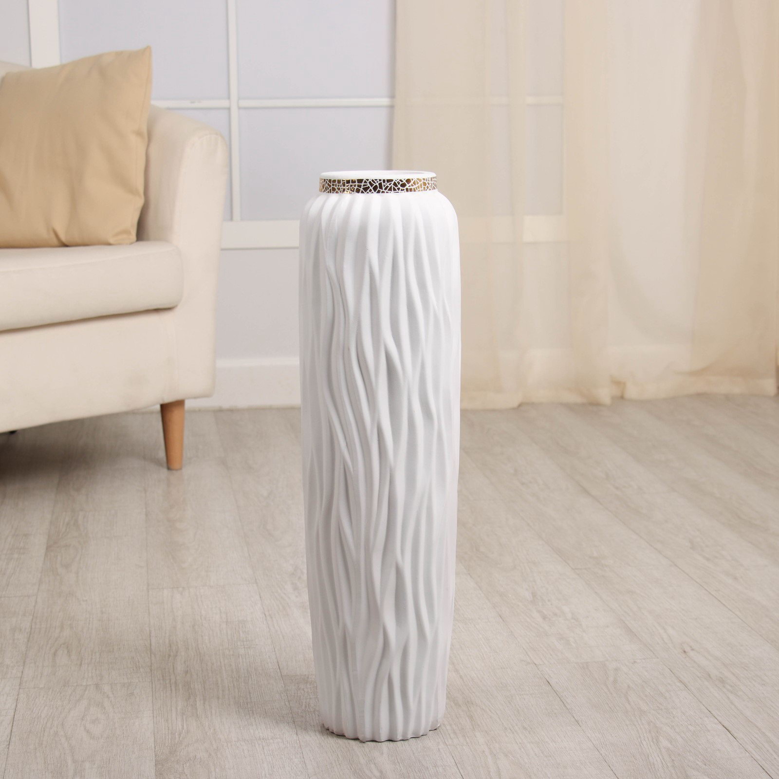Создаём атмосферу Сочетайте эту напольную вазу с различными цветочными композициями или оставьте её пустой для более минималистичного стиля. Её чистый белый цвет и изысканный рельеф станут идеальной основой для экспериментов с декором, позволяя вам создавать уникальные композиции, отражающие ваше настроение и вкус. | ||