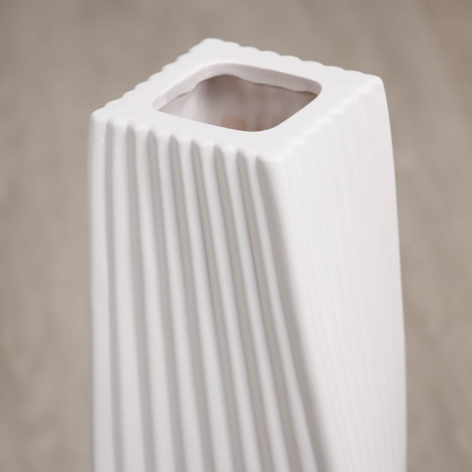 Размер упаковки: 17 x 17 x 60 см. Запрет реализации по сегментам: 00000000272 Вид вазы: Напольная Цвет: Белый Высота, см: 58 tnved: 6913910000 Текстура: С рельефом Напольная керамическая ваза с рельефным дизайном станет элегантным акцентом в вашем интерьере. Белая расцветка и высота в 58 см делают её универсальным выбором для различных помещений, начиная от строгих офисов и заканчивая уютными гостиными. Особенности продукта