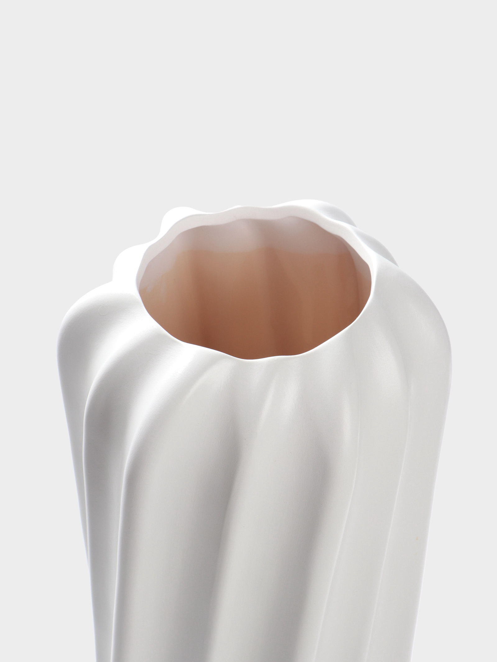 Размер упаковки: 17 x 17 x 58 см. tnved: 6913910000 Запрет реализации по сегментам: 00000000272 Цвет: Белый Вид вазы: Напольная Высота, см: 58 Текстура: С рельефом Белая керамика, строгий силуэт и выразительный рельеф. Напольная ваза "Бласио" это акцентный предмет интерьера, который привносит в пространство ощущение спокойствия, порядка и завершенности. Её лаконичная форма и фактурная поверхность создают игру света и тени, оживляя монохромную эстетику.